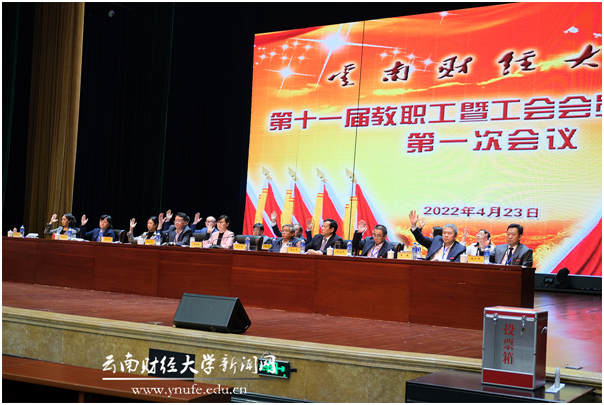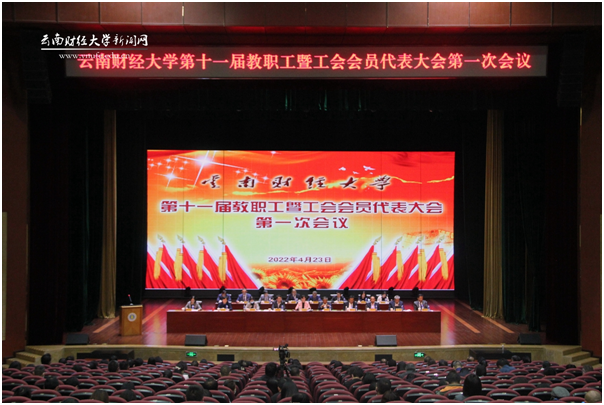 4月23日,beat365英国官方网站第十一届教职工暨工会会员代表大会第一次会议在汇文礼堂举行。云南省教育卫生科研工会主席李志恩代表上级工会组织到会祝贺,校党委书记王建颖出席会议并讲话,校党委副书记、校长伏润民代表学校作工作报告,大会选举产生了学校工会第十一届委员会和经费审查委员会。校党委副书记、工会主席、大会执行主席谢昌浩主持会议。