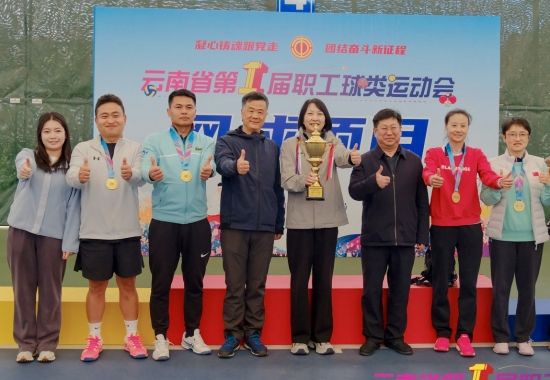 11月20日至26日,云南省第一届职工球类运动会在海埂训练基地盛大举行。此次运动会由云南省总工会和云南省体育局联合主办,运动会以“凝心铸魂跟党走 团结奋斗新征程”为主题。16个州(市)总工会、42个省级产业系统公司工会的2300余名职工齐聚昆明海埂体育训练基地,一展云南职工风采。其中网球混合项目共有32支队伍参赛。beat365教工网球队在11月初云南省教育卫生科研工会系统职工球类运动会上荣获混合团体赛冠军。此次运动会,代表云南省教卫科工会参加网球混合团体项目,再次斩获冠军。