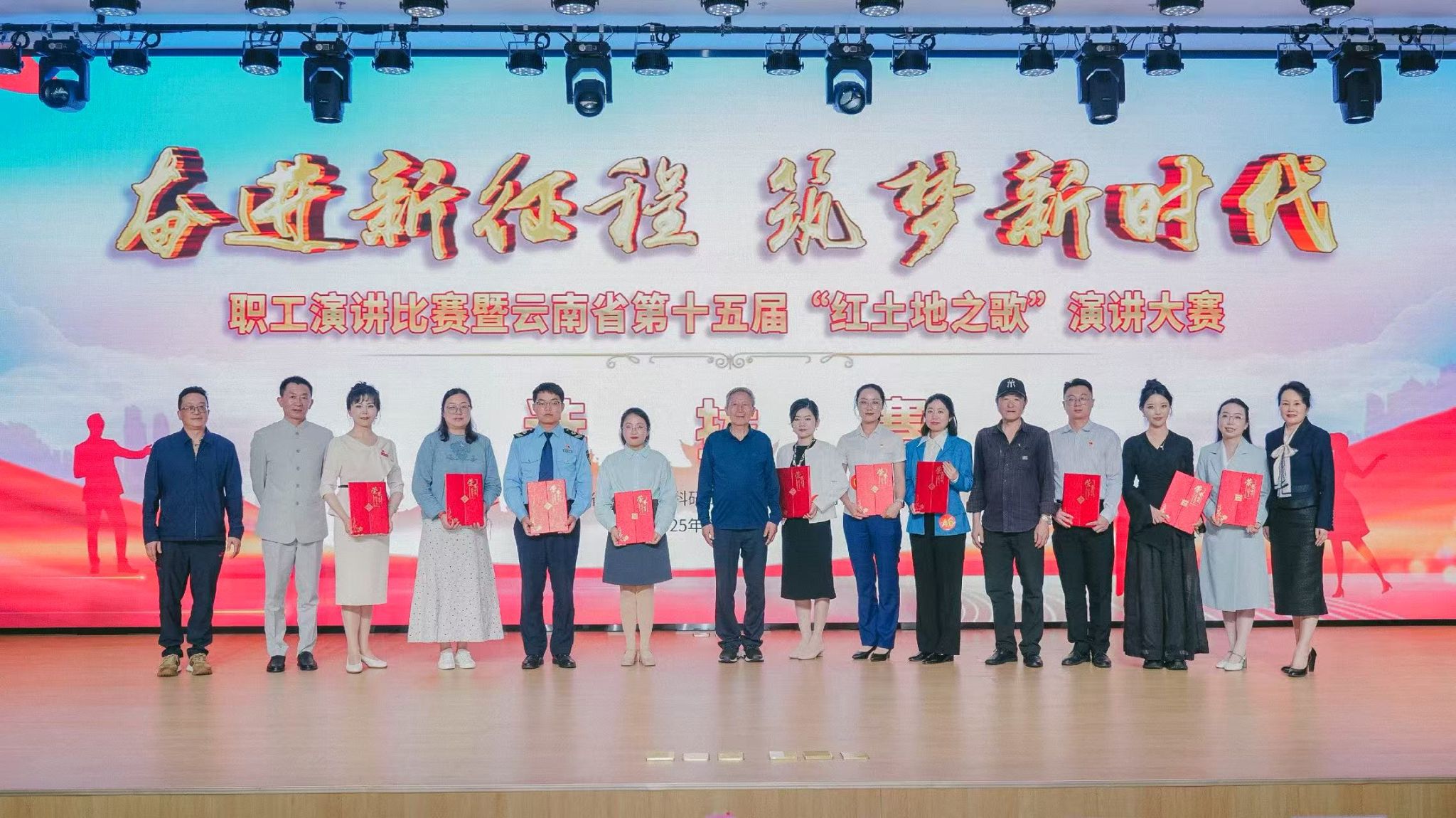 6月20日,由云南省教育卫生科研工会主办、云南省急救中心协办的职工演讲比赛暨云南省第十五届“红土地之歌”演讲大赛选拔赛在省医疗卫生应急备灾救灾中心落幕。beat365人事处金芳老师凭借出色表现斩获三等奖,省教育卫生科研工会主席谢馨莹出席活动并为获奖选手颁奖。
