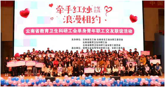 12月18日,由云南省总工会、省总工会女职工委员会、省教育卫生科研工会、省教育卫生科研工会女职工委员会主办的“会聚良缘——牵手红烛 浪漫相约”单身青年职工交友联谊活动在昆明冶金高等专科学校安宁校区开展。beat3657名青年教职工受邀参加活动。
