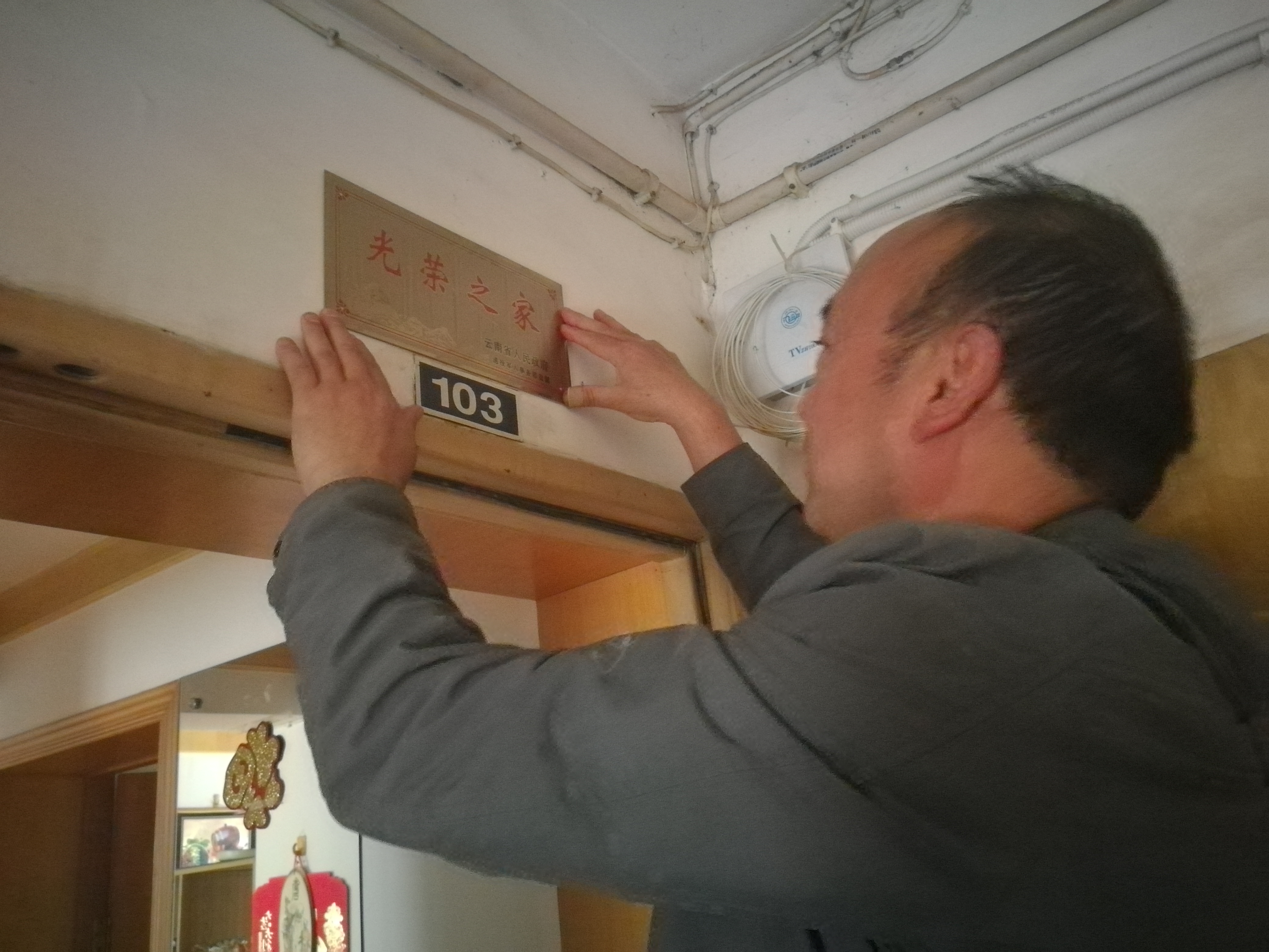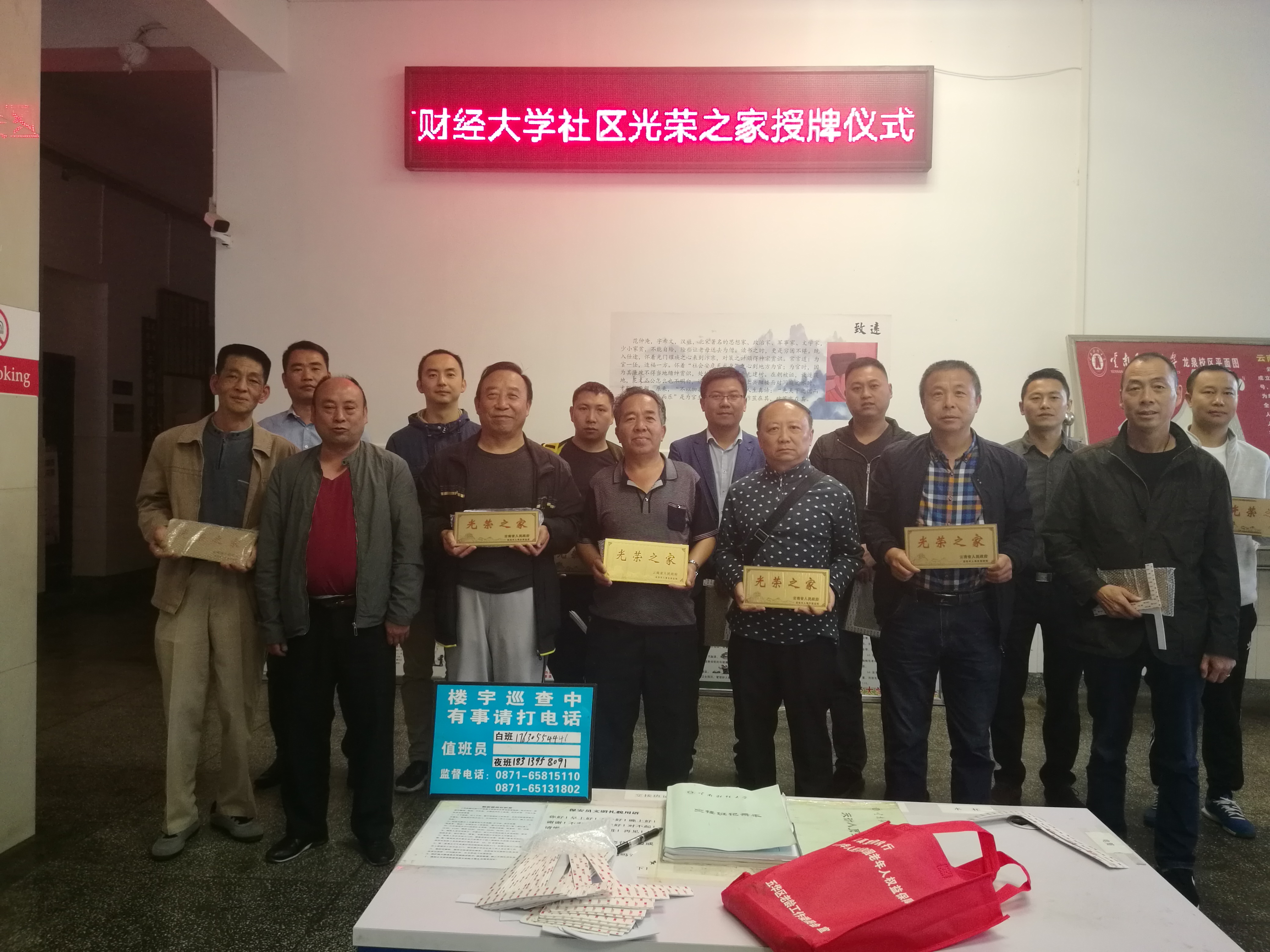财大社区秉承军爱民、民拥军的光荣传统,高度重视双拥工作,按照昆明市五华区莲华街道办事处民政要求,切实做好现役军人和退役军人等家庭悬挂光荣牌工作。在学校康园、秋园、春园及(原)财贸学校等小区为退役军人家庭开展上门挂牌服务,后期将分批有序地完成 82户光荣牌的发放悬挂工作。