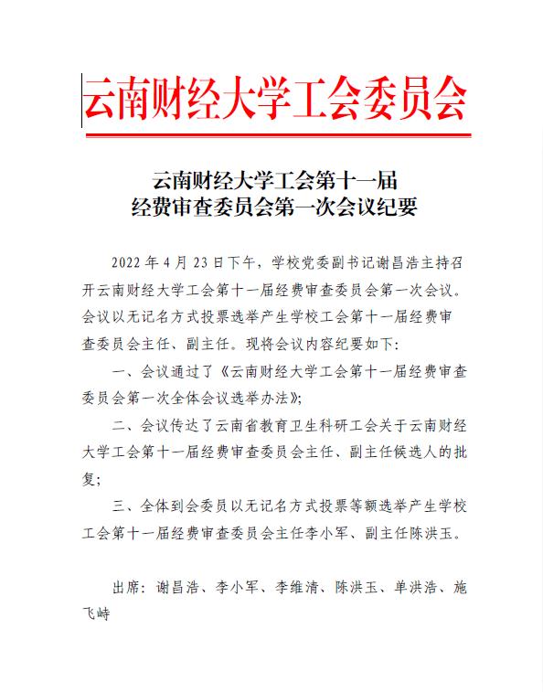 beat365英国官方网站工会第十一届经费审查委员会第一次 会议纪要