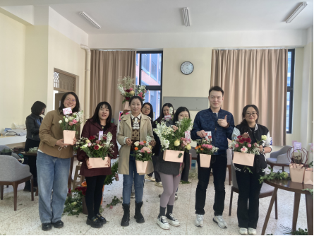 在第115个“三八”国际妇女节来临之际,为表达对女教职工的关爱与敬意,中华职业学院分工会于3月5日下午在安宁校区学院职工(妇女)小家精心组织了一场手工插花活动。活动现场,老师们沉浸在花香与创意之中,共同度过了一个温馨而富有意义的节日。