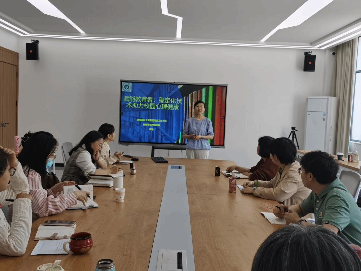 为进一步提高辅导员心理危机预防与干预能力,加强心理健康教育师资队伍建设,4月29日下午,学生处在云彩“一站式”学生中心智慧思政活动室举办“赋能教育者:稳定化技术助力校园心理健康”专题培训。云南省精神病医院中西医结合科副主任、主任医师胡怡应邀主讲,学校专职心理教师、《大学生心理健康素养》任课教师及各学院辅导员代表参加培训。