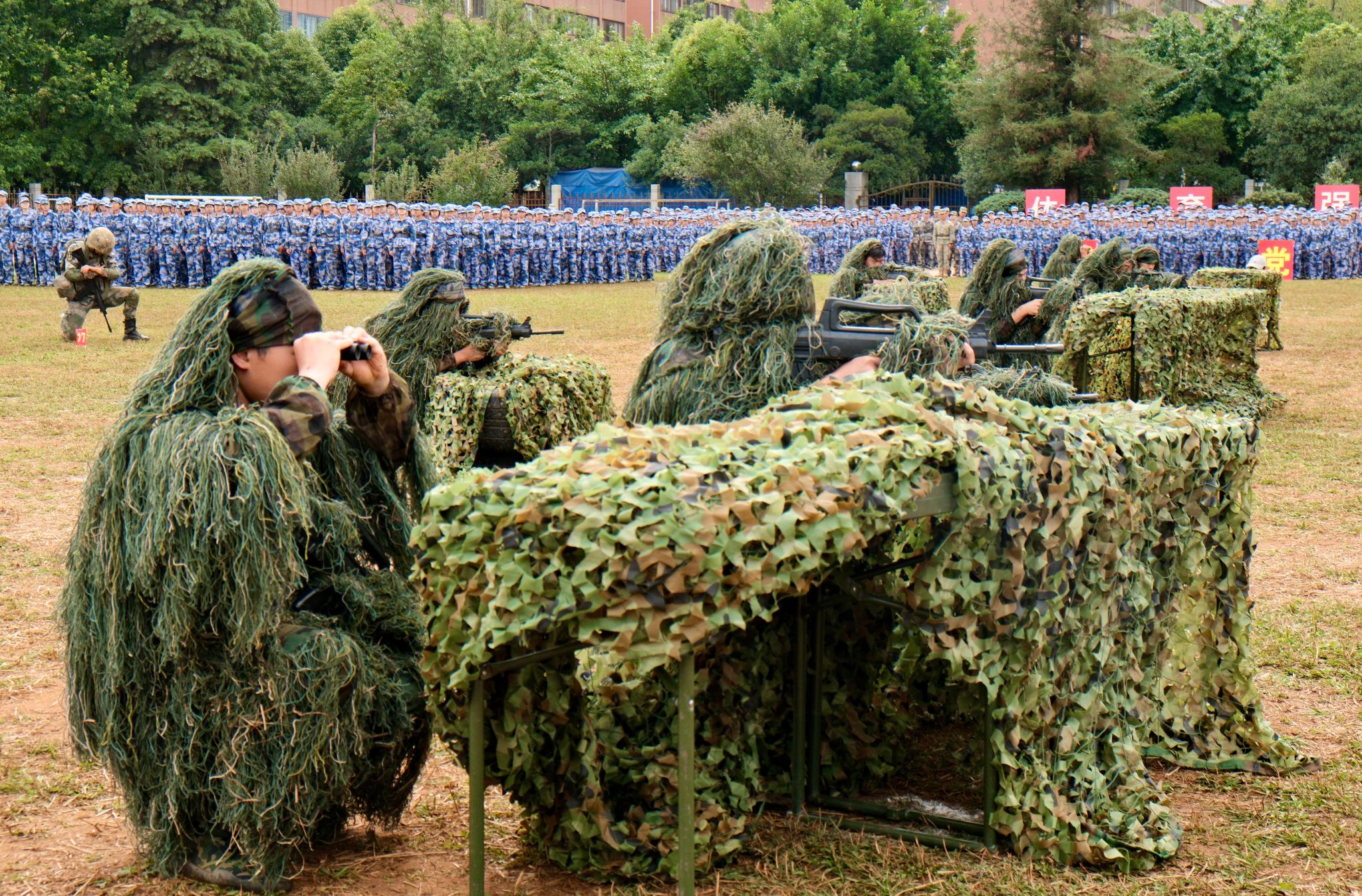 军训军事技能展示在庄严雄壮的国歌声中拉开序幕。队列方队昂首挺胸、英姿勃发、步履坚定,从立正、稍息、敬礼,到停止间转法,再到齐步、正步、跑步,每一个动作都干净利落、整齐划一;军体拳、格斗方队吼声铿锵有力,目光如炬、拳腿生风,一招一式尽显朝气蓬勃、热血沸腾的青春活力;刺杀操方队动作凌厉迅猛,挥棍有力,一突一刺,一防一击,展示出坚韧不拔、果断勇猛的战斗作风;战术综合演练方阵,通过模拟红蓝对抗形式,将军纪与团结协作融入每一个战术动作,侦查敌情、听从指挥、交替掩护、战地救护、火力突击、冲锋陷阵,最终经过重重突围成功完成任务。