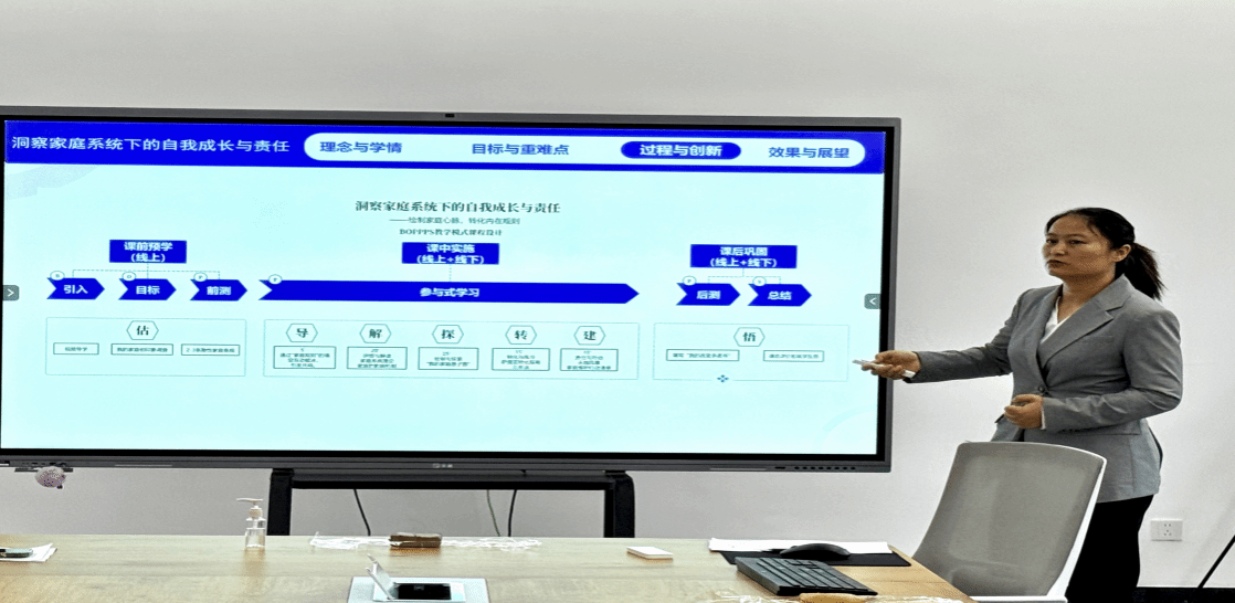 沙龙围绕课程教学展示与研讨展开,杨红老师以“家庭规则与个体成长”为主题进行了教学展示,她通过丰富多彩的课堂活动和互动式教学设计,深入浅出地探讨了个体如何打破家庭规则获得成长。舒一丹老师围绕“情绪转念的艺术”主题,分享了如何引导学生转换视角调整情绪,有效进行情绪管理。