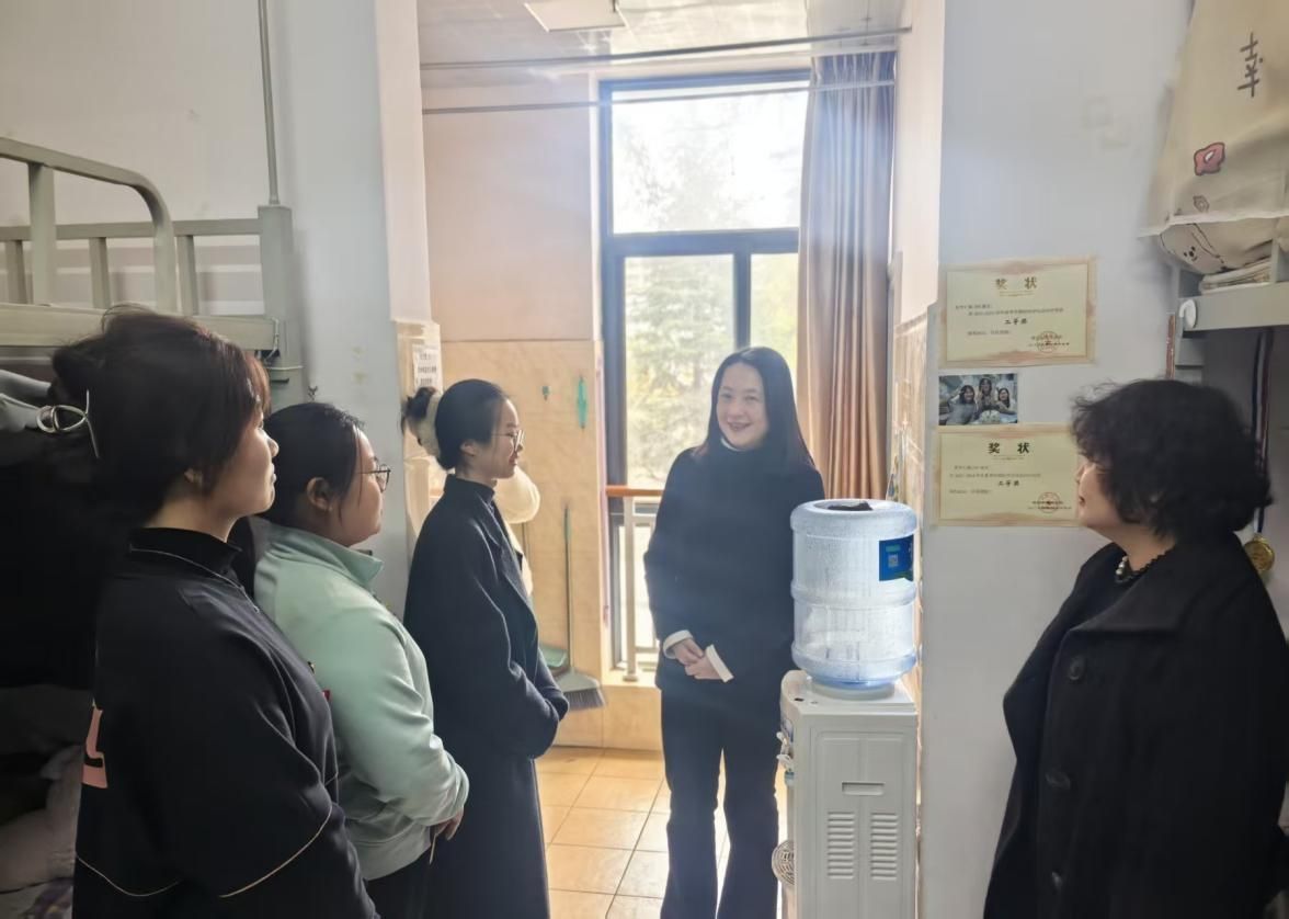 团省委、省学联一行走进学生宿舍,与学生代表亲切交流,详细了解了同学们在日常生活、专业学习和个人发展等方面的情况。王珍珍结合时代要求与自身经历,对同学们提出了四点期望:一是胸怀家国,志存高远。希望同学们自觉将个人理想追求融入到国家发展和民族复兴的伟大事业中。二是锤炼本领,躬身实践。勉励同学们珍惜在校时光,刻苦学习专业知识,同时积极参与各类社会实践活动与志愿服务,发挥模范带头作用。三是强健体魄,全面发展,积极参加体育锻炼,培养健康的生活习惯和坚强的意志品质。四是要规划未来,贡献才智。建议同学们结合自身实际做好职业生涯规划,结合国家需要、社会需求和个人特长,明确发展方向,脚踏实地提升职业竞争力。