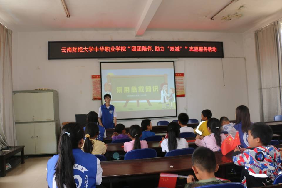 为助力“双减”政策的推进,进一步丰富青少年儿童的暑期生活,促进义务教育阶段学生的全面发展与健康成长,7月13日,中华职业学院大学生志愿者在安宁市八街街道七街村委会及摩所营村委会开展“团团陪伴·助力‘双减’”专项活动。