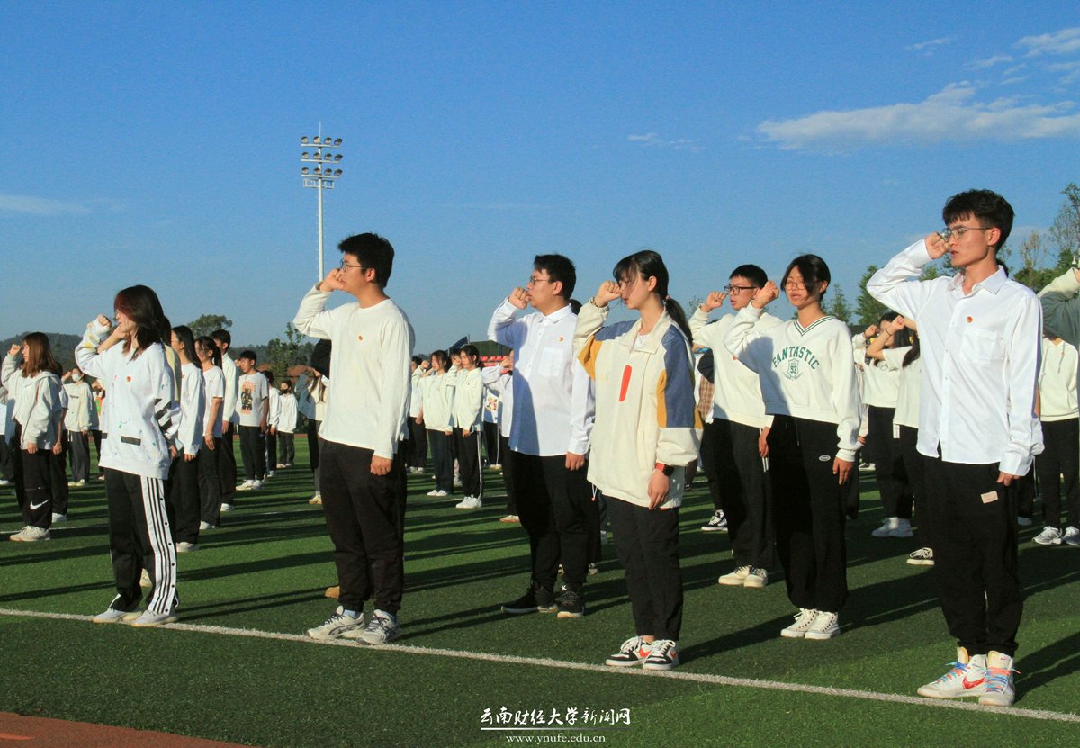优秀团员代表、会计学院王玉环同学和旅游与酒店管理学院胡馨允同学分别做国旗下的演讲。作为学生代表号召云财青年坚定不移听党话、跟党走,努力学习储备知识能量,提升专业技能,练就过硬本领,在青春赛道上奋力跑出最好成绩。