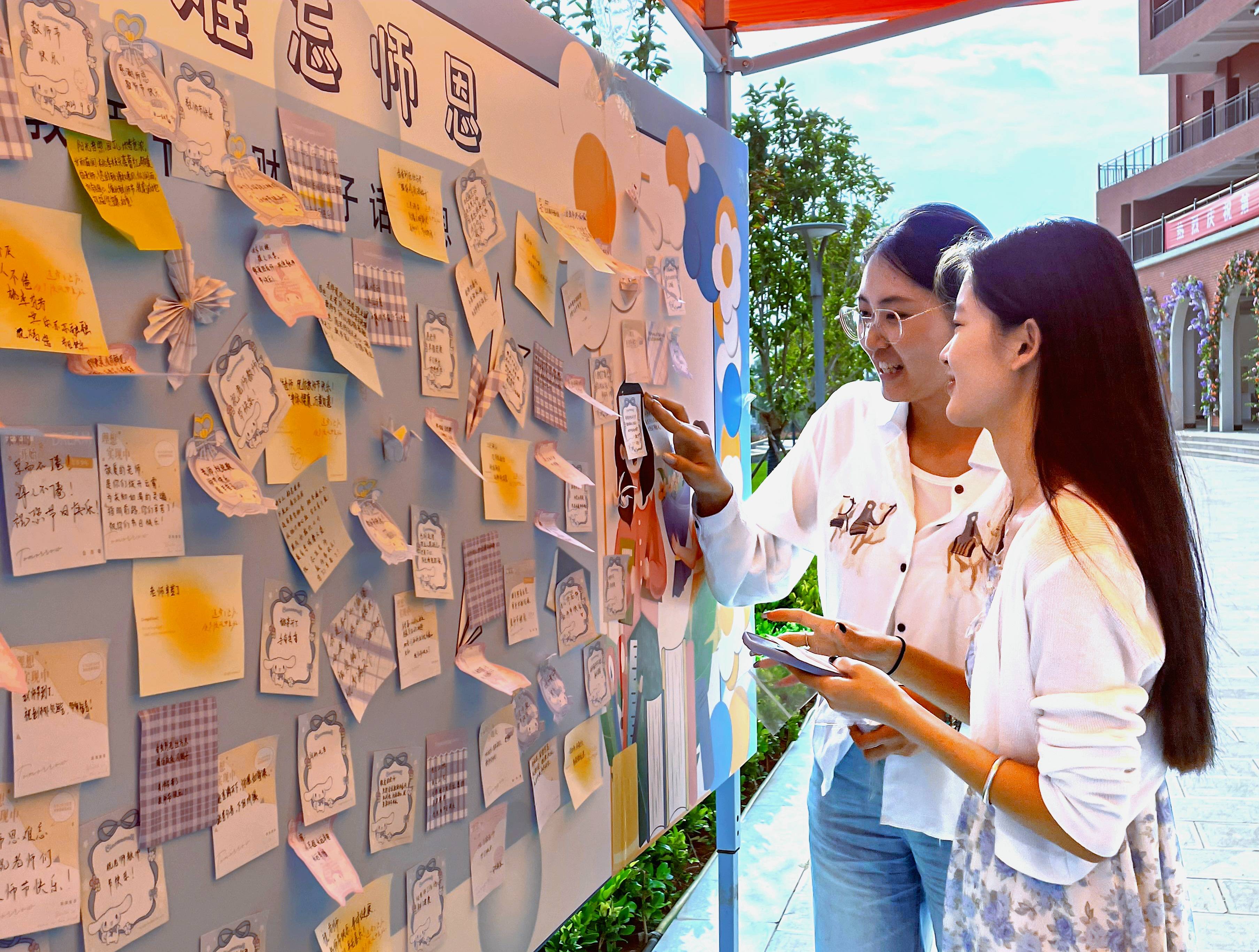 传媒与设计艺术学院、旅游与酒店管理学院、国际工商学院社团部开展“我与恩师合个影”“老师,听我对您说”手工贺卡制作活动和“沁香星海,礼献恩师”手工书签制作活动,用手工作品承载对老师谆谆教导的感激之情,表达对未来学习道路的信心和期待。