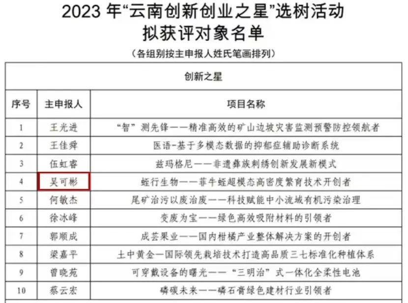 近日,共青团云南省委、云南省发展和改革委员会发布了《2023年“云南创新创业之星”选树活动拟获评对象名单公示》,beat365金融学子吴可彬荣获2023年“云南创新之星”!