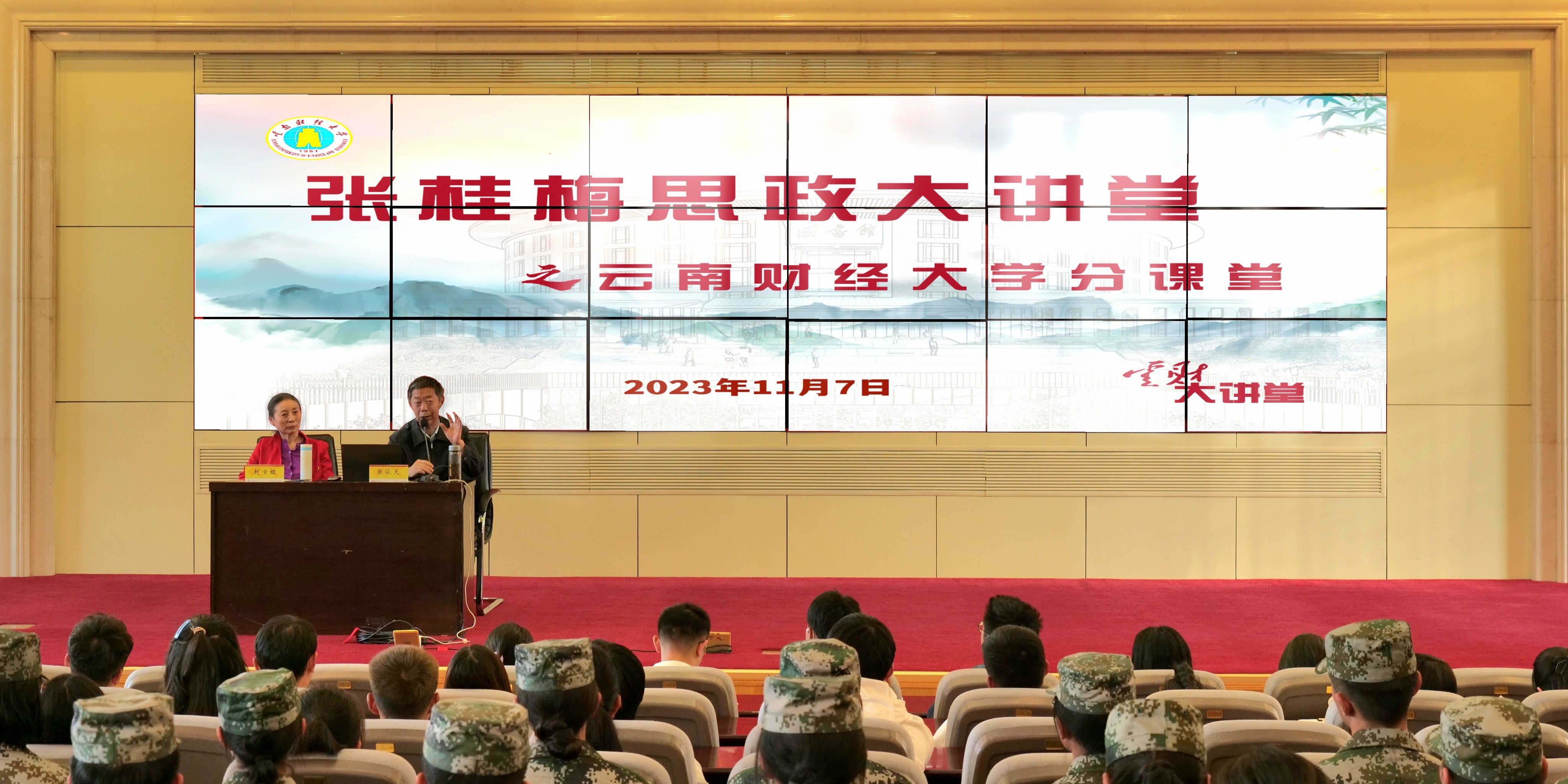 为教育引导广大青年学生传承红色基因,赓续红色血脉,11月7日下午,张桂梅思政大讲堂第四讲beat365英国官方网站分会场在beat365英国官方网站国际学术报告厅举行。中央团校特聘教授、云南籍开国中将赵镕将军之女,赵京娅;中央团校特聘教授、开国少将张蕴钰之子,张旅天;宣讲团成员张婧菲老师应邀与云财青年分享了红色家风的传承故事。校党委委员、宣传部长寸丽锋出席活动,校团委书记舒挺主持活动。