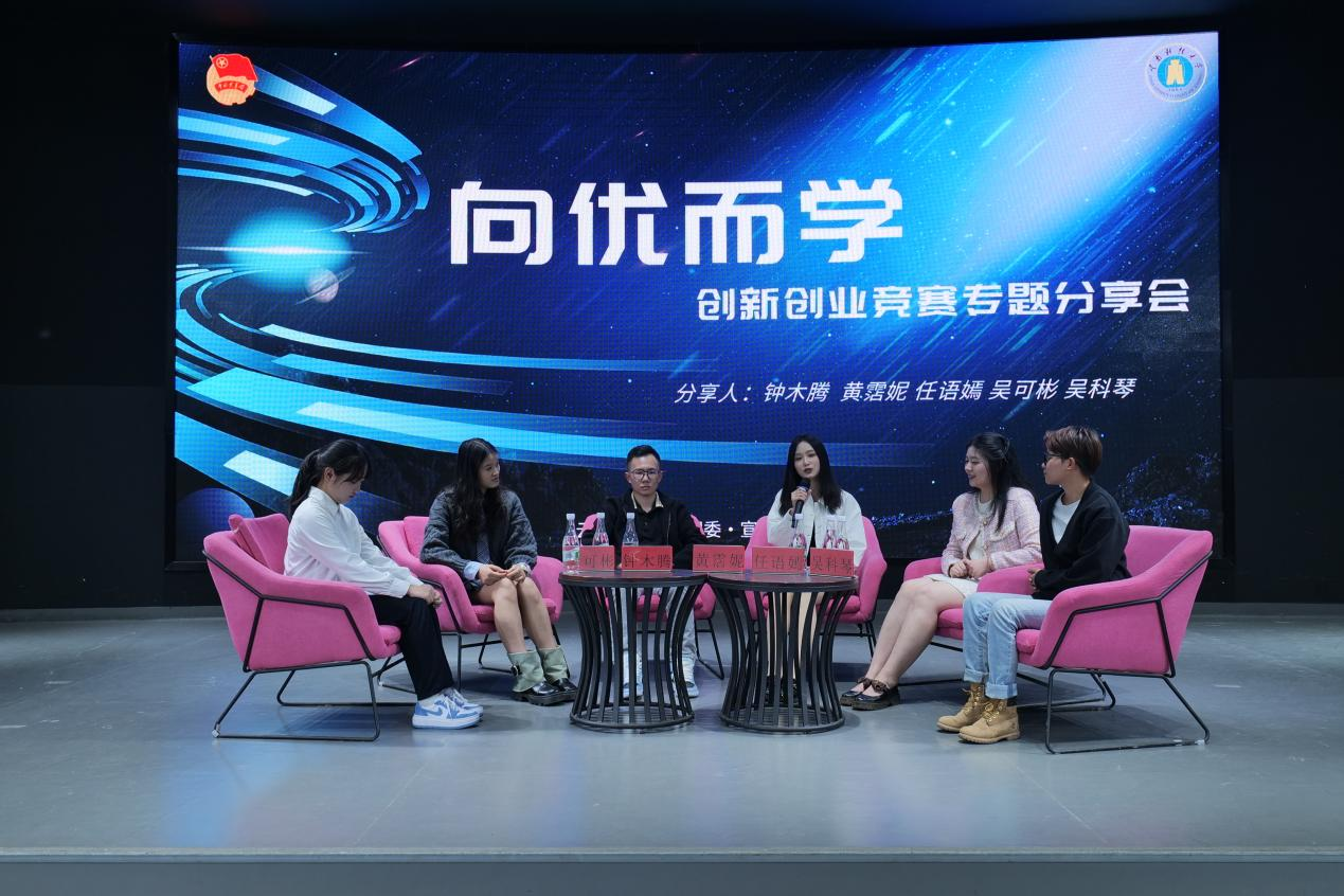 为了促进云财学子进一步了解创新创业竞赛,鼓励云财学子们向先进看齐,向榜样学习,营造“我敢闯,我会创”的创新氛围,校团委于11月9日在北院路演大厅组织开展了“向优而学——创新创业竞赛专题”分享交流会。这次分享交流会邀请了作为负责人荣获第八届中国国际“互联网+”大学生创新创业大赛中全国金奖、云南省冠军(金奖、最具商业价值奖)等奖项获得者钟木腾、第八届中国国际“互联网+”大学生创新创业大赛铜奖;第十三届“挑战杯”中国大学生创业计划竞赛全国铜奖等奖项获得者黄霑妮、全国第十八届“挑战杯”大学生课外学术科技节竞赛全国二等奖等奖项获得者任语嫣、第九届云南省“互联网+”大学生创新创业大赛中获得云南省季军;“云南创新创业之星”等奖项获得者吴可彬、第九届云南省“互联网+”大学生创新创业大赛云南省季军;第八届创客中国云南省中小企业创新创业大赛创客组一等奖等奖项获得者吴科琴五位同学来分享他们创新创业的经历与感悟。