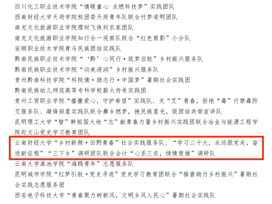中华职业学院“乡村新颜·田野青春”社会实践服务队、商学院、会计学院“学习二十大,永远跟党走,奋进新征程”“心系三农,续情楚雄”联合调研团队荣获“优秀文字报道团队”称号;