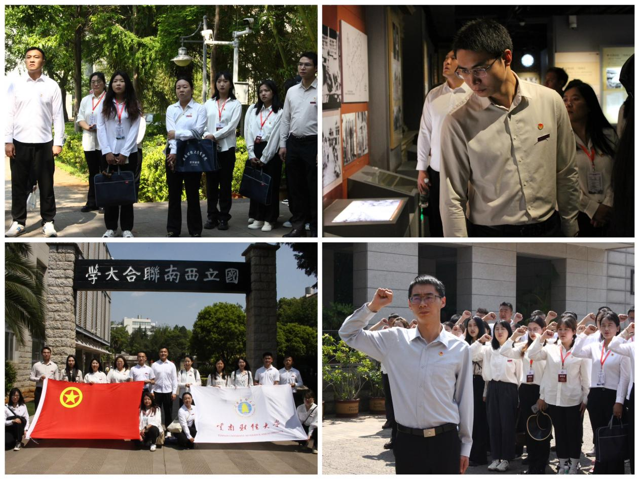 随后,学员们来到国立西南联合大学旧址进行参观学习,在讲解员的带领下上了一堂生动的沉浸式党课。大家先后参观了“一二•一”运动纪念柱、革命烈士纪念碑和西南联合大学原教室等历史遗迹,回顾了西南联大在抗战艰苦条件下赓续中华民族文化血脉、为国家振兴培养人才的峥嵘岁月,领悟了前辈们不畏万千险阻、舍身报国的奉献精神。在庄严肃穆的气氛中,学员们在“一二·一”运动四烈士墓前列队重温入团誓词,用铿锵的话语表达了对革命先烈的崇敬和缅怀之情。