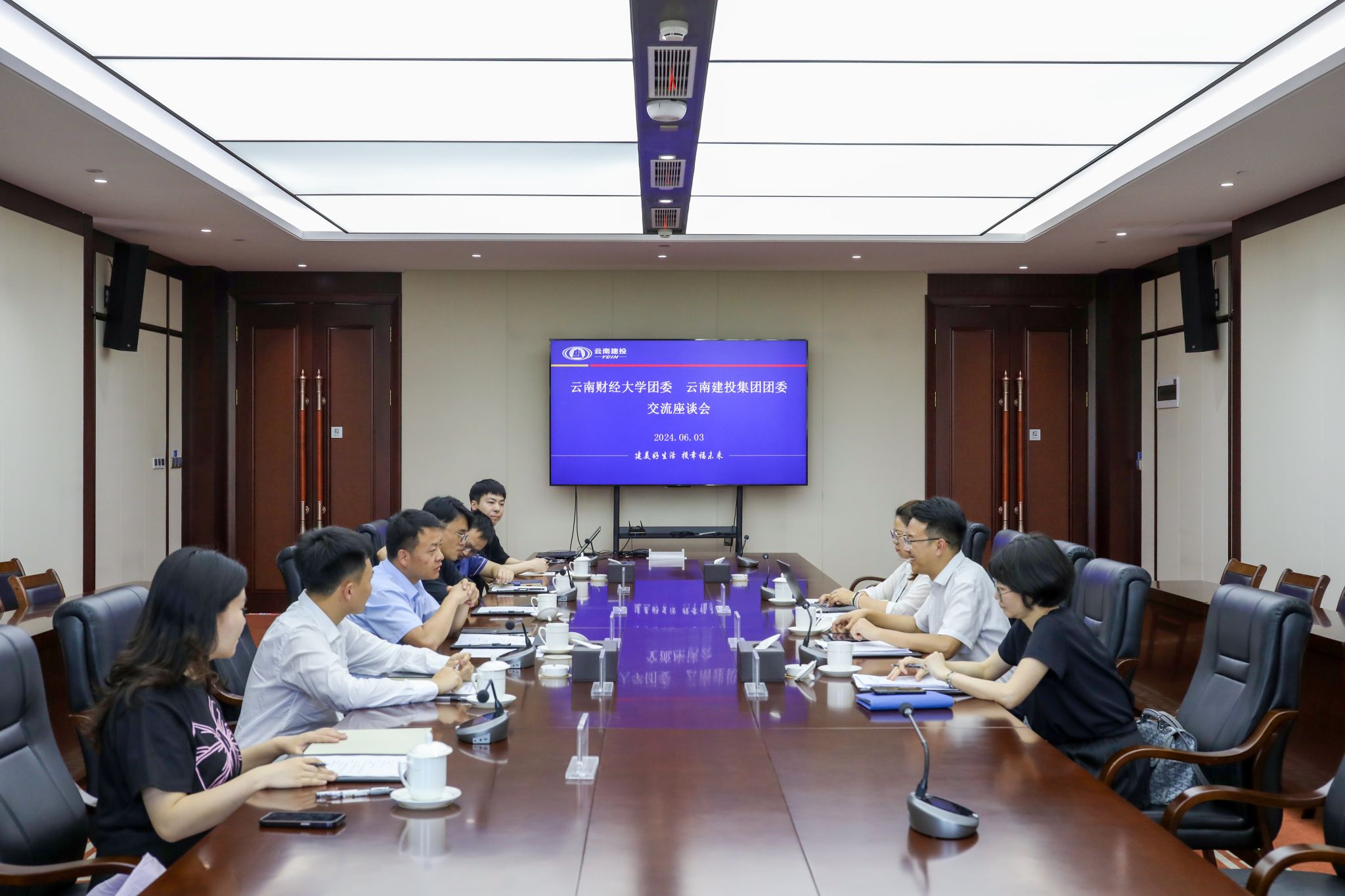 6月3日下午,beat365英国官方网站团委书记舒挺、副书记李昀璟带队前往云南建投集团,就深化校企共青团组织联建共建进行交流座谈。建投集团团委书记李庆光、副书记黄东杰等同志参加座谈。