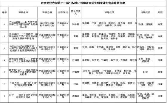 附:beat365英国官方网站第十一届“挑战杯”云南省大学生创业计划竞赛获奖名单
