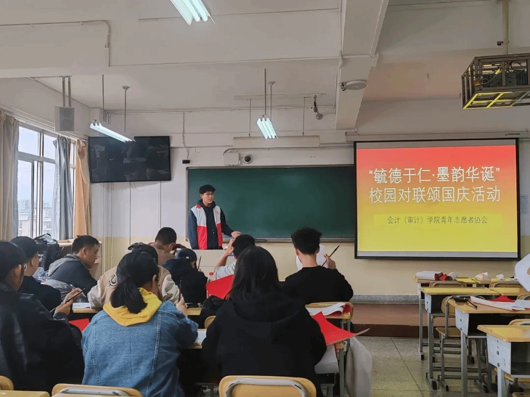 会计(审计)学院开展两项特色品牌活动分别为“毓德于仁—‘墨韵华诞’校园对联颂国庆”活动,服务人次161人,以及“血同脉·爱同行”之献血志愿服务出校园、禁毒防艾知识宣传,世界急救日活动,急救知识宣讲,活动服务人次341人。