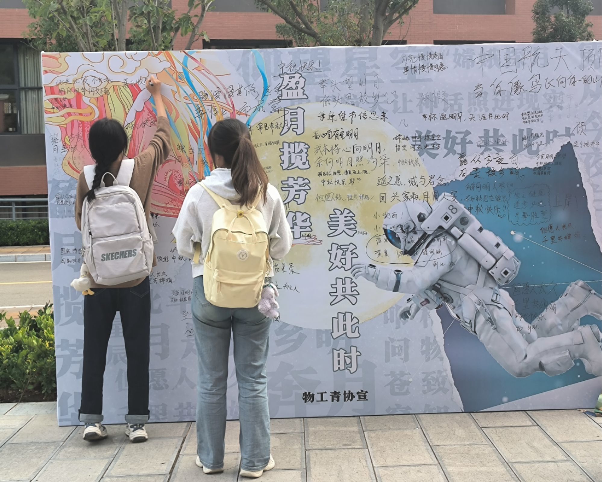桂香万里月当空,中秋校园情意浓。为了迎接即将到来的中秋节,物工院青年志愿者协会于2023年9月27日下午13点在海桐餐厅前顺利开展了“盈月揽芳华,美好共此时”中秋节主题活动。