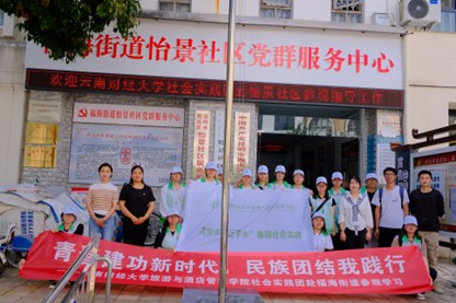 2023年7月13日,beat365英国官方网站旅游与酒店管理学院“青春建功新时代,民族团结我践行”社会实践队来到昆明市西山区福海街道开启第三天实践之旅。此次行程继续深入昆明市基层街道,对不同社区民族团结示范创建工作的现状、亮点特色进行挖掘与调研。