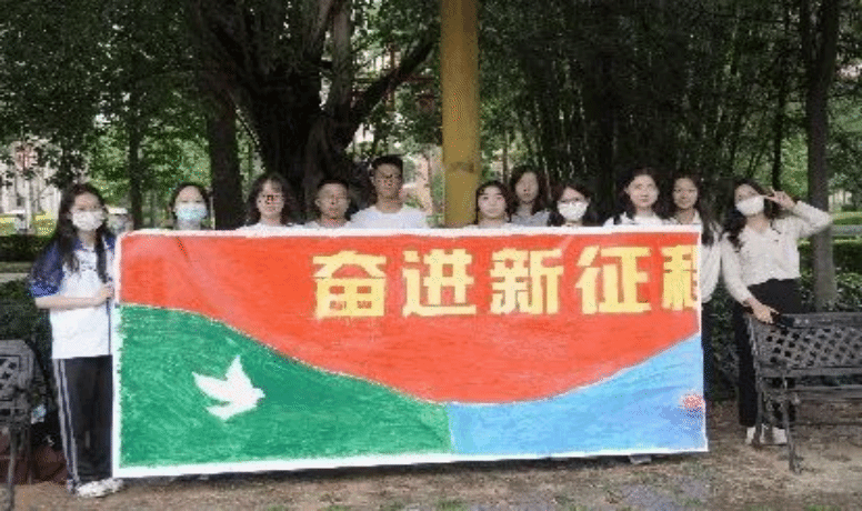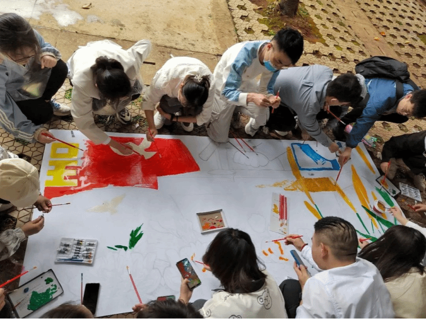 在片刻休息后,活动进行到最后一项——“青春心向党,手绘新征程”。各组分别派代表抽签决定绘画内容,同学们根据绘画内容自由作画、上色,最后将作品拼合、进行展示。