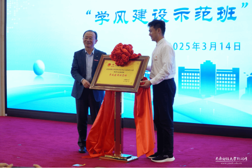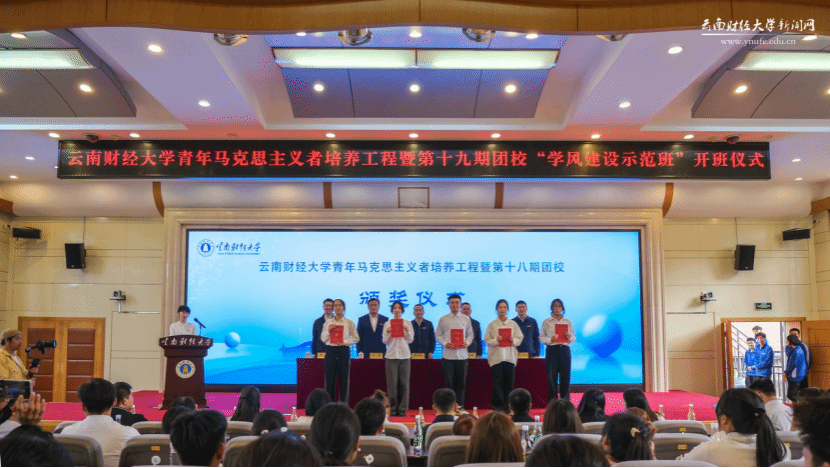 3月14日下午,beat365英国官方网站青年马克思主义者培养工程•第十九期团校暨“学风建设示范班”开班仪式在龙泉路校区国际学术报告厅举行。学校党委书记陈红教授为云财青年开讲2025年春季学期“开学第一课”并为青马班首个“学风建设示范班”揭牌。