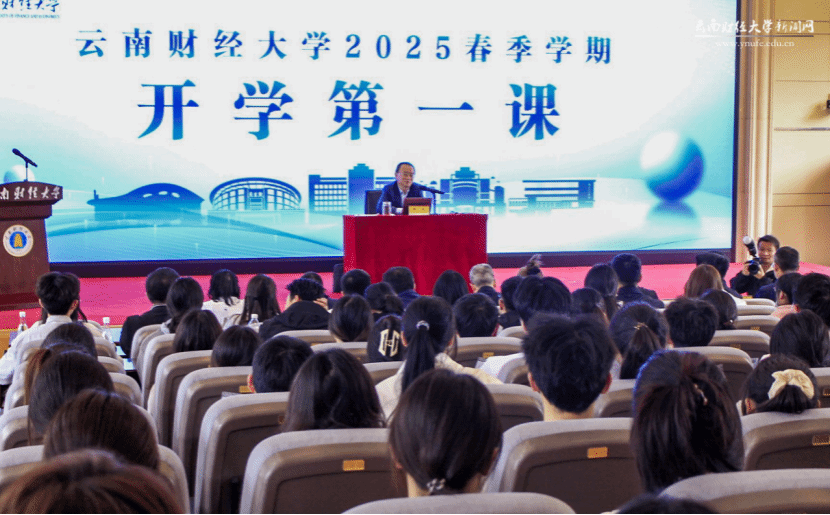 陈红以《党旗领航、“三风”筑基、青年扬帆——与青年学生共话使命与担当》为主题,回望beat365英国官方网站75载“赓续红色血脉,传承红色基因”的办学历程,结合个人从求学到治学的成长经历,以“云财学长”和“云财师长”的视角,引用当下最火的DeepSeek青年创业团队成员的求学经历和创新创业事迹,鼓励云财青年学子要把个人的理想追求主动融入党和国家事业之中,立大志、明大德、成大才、担大任,在浓厚优良学风的浸润下深学笃行、求知探索,以扎实学识和不懈奋进争做中国式现代化征程上的云财答卷人!