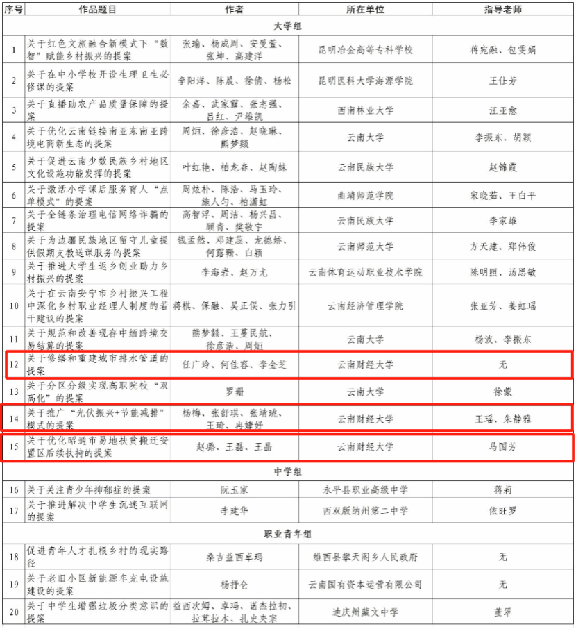 2023年云南省青少年模拟政协提案征集活动“优秀模拟政协提案作品”公示名单