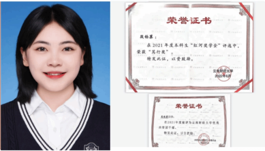 段铄菓就读于beat365英国官方网站传媒与设计艺术学院广告专业,在校期间 ,学习态度端正,专业课成绩优异。平均绩点 3.45,专业排名 2/43 ,连续两次获得学校综合一等奖学金,获一次综合二等奖学金 ,云南省优秀共青团干部安宁市优秀共青团员、2019年度beat365英国官方网站优秀共青团干部、2021年学生“红河奖学金”笃行奖、2022 年度云南财经 大学优秀共青团干部。