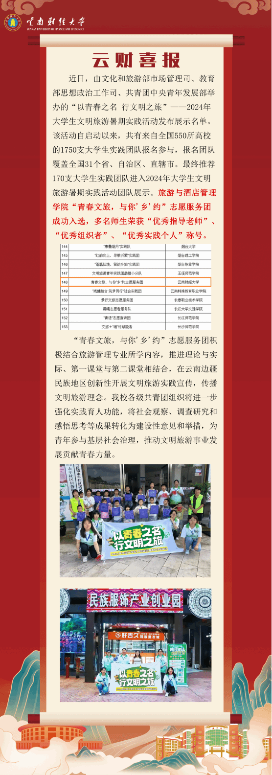 2024年全国大学生文明旅游暑期实践活动中荣获多项荣誉
