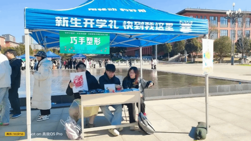 此次展位设计以彝族文化为表现形式,以民族团结为主题,目的是向同学传播彝族特色文化,展示少数民族的风采,增强同学们的民族认同感和民族自豪感。展位亮点包括使用多种民族风的饰品,如桌布;以及一些彝族特色小礼品,如:三角包、布包。