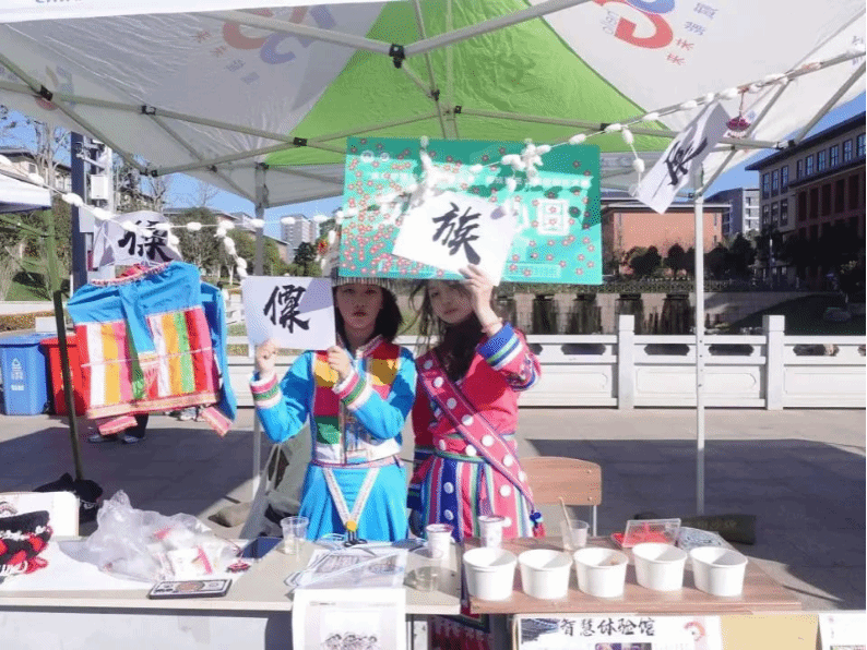 通过在展位展示傣族的银饰品、傣锦以及贝叶经来展现傣族的民族风华与文化特色,互动环节设置傣语速记和竹竿舞体验,致力于将傣族的好客与热情传递出去,将美好祝福献给大家。