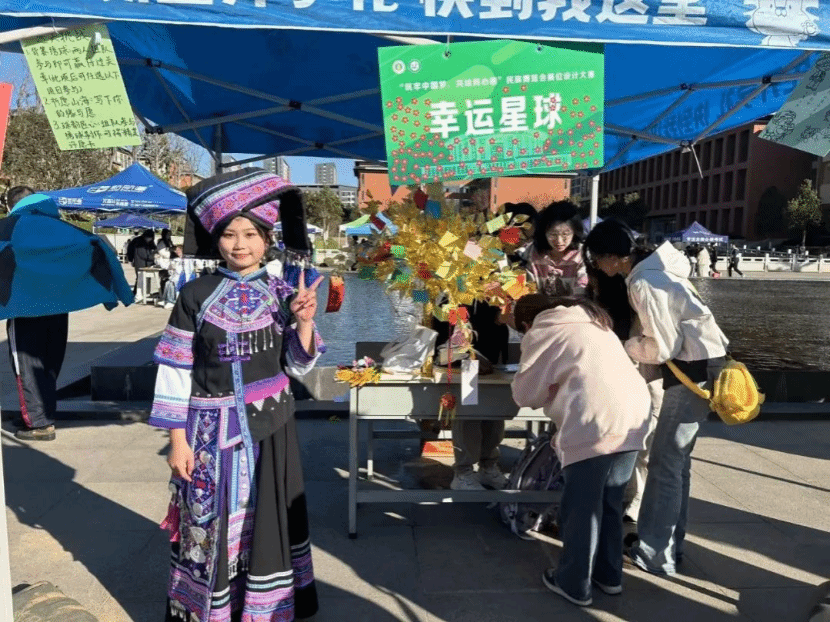 此次民族博览会展位设计大赛将旅游布展专业能力提升与铸牢中华民族共同体意识教育相结合。20支参赛队围绕主题布展,将大学生对民族文化的理解融入展位设计布置。安宁校区决赛现场吸引了广大同学到展区中欣赏各民族传统服饰、手工艺品和美食,还亲身参与到竹竿舞体验、音乐表演、泡茶品茶、扎染制作、投壶比赛等活动和游戏中,深切感受各民族文化的独特魅力。观众手持“小红花”穿梭于各个展位,为心仪的队伍投票助力,促进了各民族青年的交往与交融。为学校营造了“中华民族一家亲,同心共筑中国梦”的团结氛围。