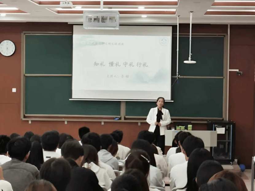 为营造优良学风、传承礼仪之风、共建文明校园,一是依托“青马工程”训练营,邀请学院党委书记李娟老师面向全院学生担任主讲人,从“不学礼,无以立”的古训入手,从知礼、懂礼、守礼、行礼展开讲解。