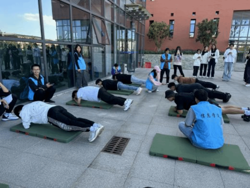 开展足篮排等球赛,举办学院“信息逐风 活力满程”运动会,体育锻炼活动等覆盖300余名同学,同时督促同学晨起参加早锻炼等,将健康意识传递给每一位同学。学院在第40届学校运动会中取得了团体总分第四的好成绩,获得了体育道德风尚奖,两位同学分别在女子仰卧起坐和男子110栏打破了校运会记录,展现出拼搏进取的精神风貌。