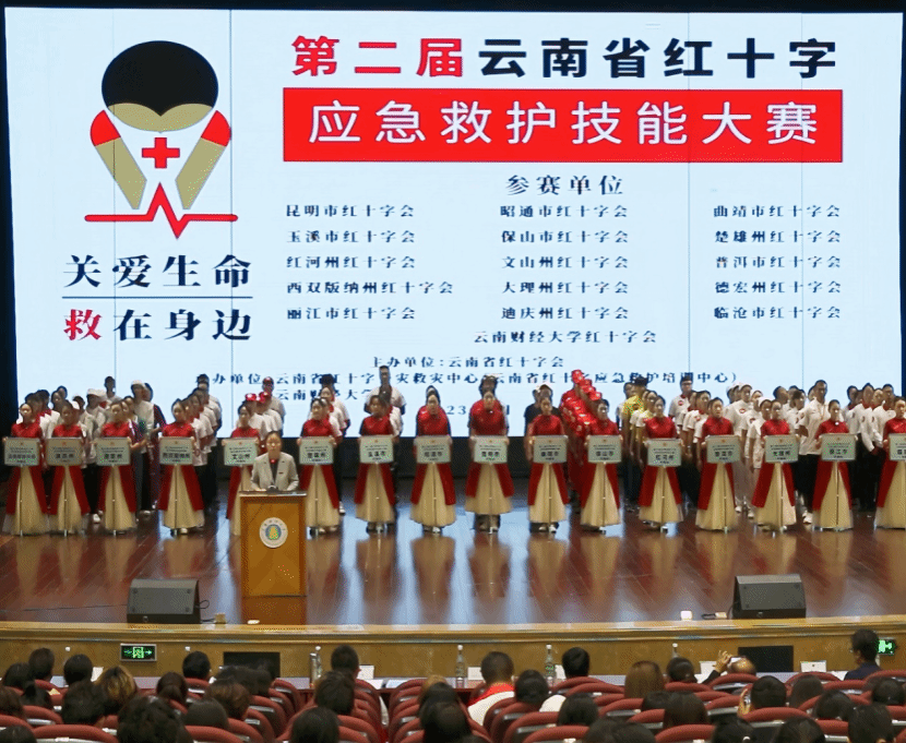 陈光瑜在开幕式致欢迎辞,她对15个州市的参赛队伍表示热烈欢迎。她指出,此次大赛得以落户beat365英国官方网站,是云南省红十字会对beat365红十字工作的充分认可,也是beat365践行“以人为本、求实创新、引领社会”价值追求的一次具体实践,更是红十字人道理念扎根校园,红十字知识技能走进校园,红十字青年实践活跃校园的重要举措。希望通过大赛的举办,与各参赛单位搭建友谊与合作的桥梁,共同在人道理念传播、志愿服务开展、对外交流合作、阵地队伍建设等方面寻求共识、达成合作。紧紧围绕党和国家中心任务,充分发挥红十字会作为党和政府在人道领域的助手和联系群众的桥梁纽带作用,以实际行动打造好“救在身边”品牌,不断增强人民群众的获得感、幸福感、安全感。