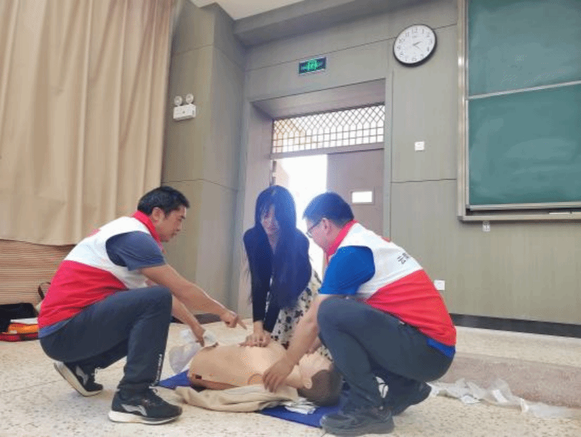 培训采用理论知识培训和现场实操相结合的方式开展。云南省红十字应急救护培训中心的11名培训老师在培训中讲解红十字基本知识、救护概论、创伤救护、心肺复苏等理论知识,带领学员实践操作绷带包扎、三角巾包扎、骨折固定、AED(自动体外除颤器)使用、心肺复苏、翻转体位、海氏急救法、包扎止血等急救演练,对学员进行系统化培训。