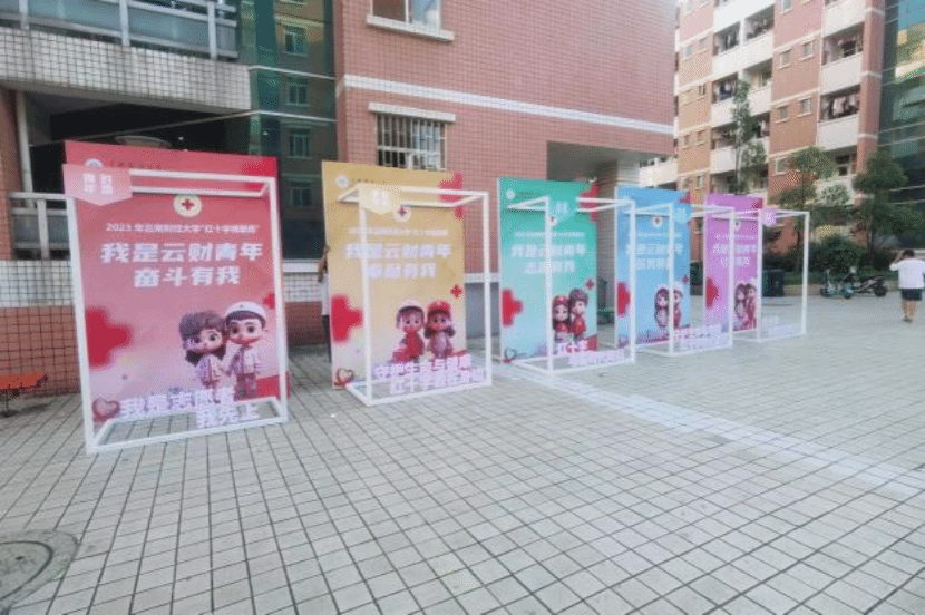 此外,学校红十字会还布置了校内宣传打卡点,通过发放小扇子、口罩、贴纸等宣传物料吸引同学们前来打卡拍照,用同学们喜闻乐见的形式引导同学向上向善。
