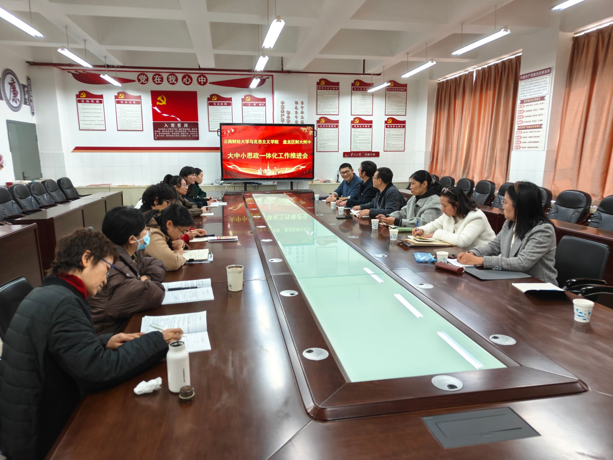 此前,12月13日,马克思主义学院的一线教师代表和云财附中的历史课程组和政治课程组的教师团队在beat365英国官方网站附属中学举行座谈交流,就大学和中学思政课的课程设置、课程体系建设、课程内容衔接、课程方法创新等方面进行了深入研讨和交流学习。教师们纷纷表示,要进一步加强合作,通过集体备课共同探讨教学内容、教学方法和教学资源,提高教学效果和学生学习实效性,共同打造“行走的思政课”等特色校本课程,拓宽学生的视野,激发学生的学习兴趣,共同搭建集体备课磨课平台,构建教改教研和备课一体化常态化机制。