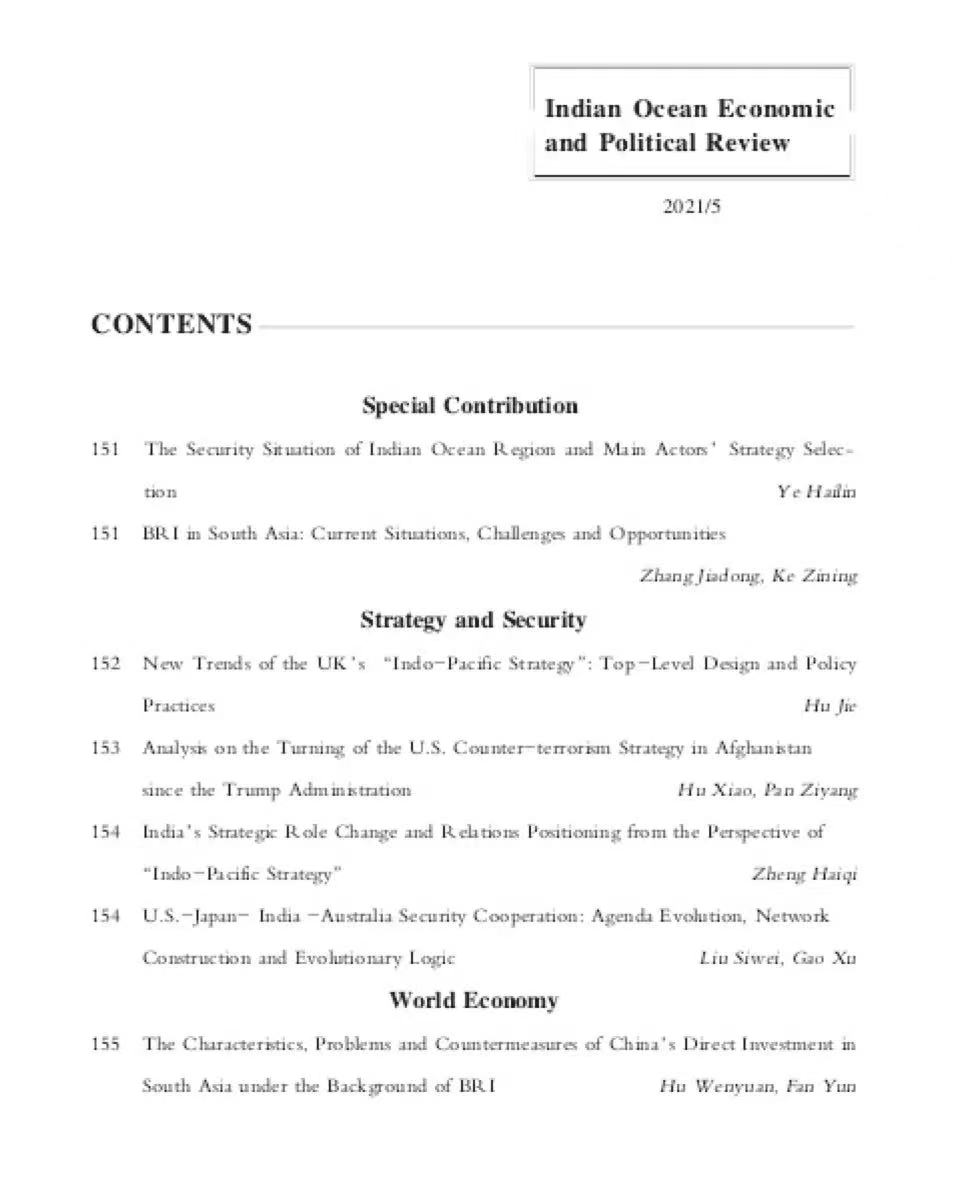 【关键词】印度洋;中美关系;印度;“印太战略”