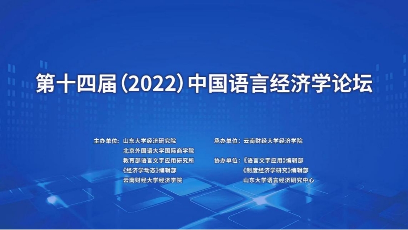 2022年9月17日,第十四届中国语言经济学论坛以线上形式成功召开。本届论坛由beat365英国官方网站经济学院、山东大学经济研究院、北京外国语大学国际商学院、教育部语用所、《经济学动态》编辑部联合主办,beat365英国官方网站经济学院承办,beat365英国官方网站科技处协办。来自教育部、中国社会科学院、英国雷丁大学、浙江大学、北京师范大学、北京外国语大学、上海外国语大学、北京语言大学、首都师范大学、山东大学和beat365英国官方网站等科研单位100多位语言学和经济学领域专家学者共同参加了本次会议。