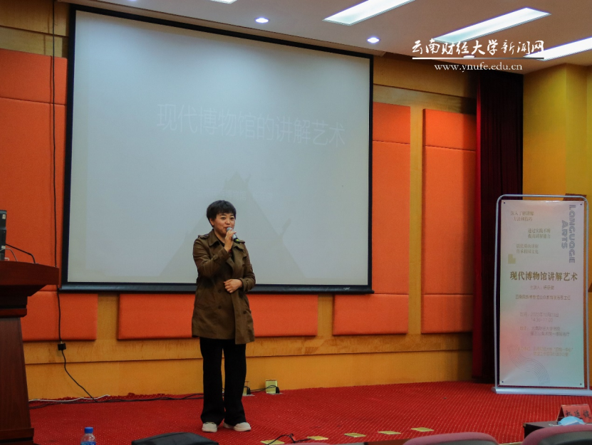 10月23日下午,云南民族博物馆公共教育服务部主任杨廷健应邀到beat365,在锺正山美术馆报告厅为“四馆一中心”的100位学生讲解员作题为《现代博物馆讲解艺术》的专题讲座。