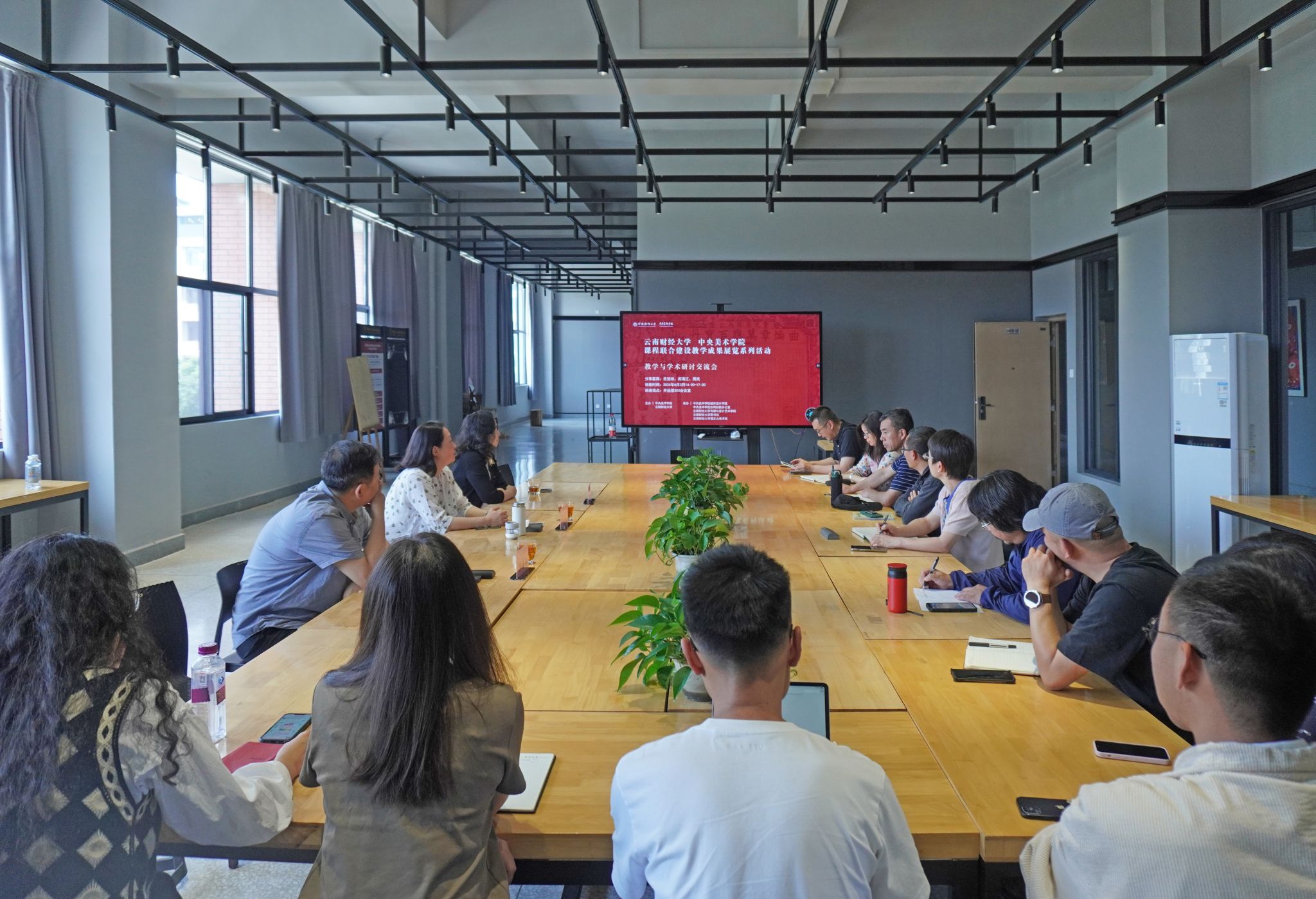 当天下午,学院举办教学与学术交流研讨会。来自中央美术学院的周岚等3名教授交流发言,分别围绕人工智能赋能艺术设计教育发展、精微素描与课程思政建设、作品设计服务重大国家发展战略与地方区域的经济发展等内容同学院教师进行分享交流。学院教师就云南非遗、少数民族文化符号彰显等内容同与会专家进行了探讨。