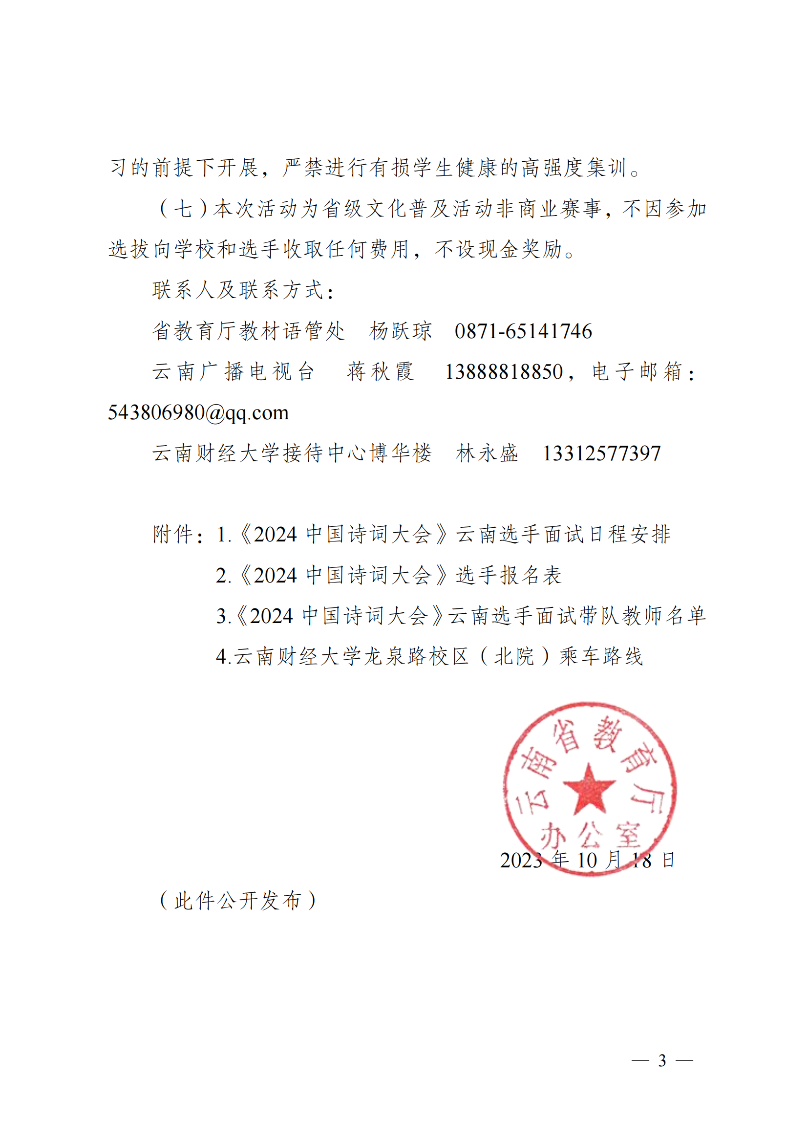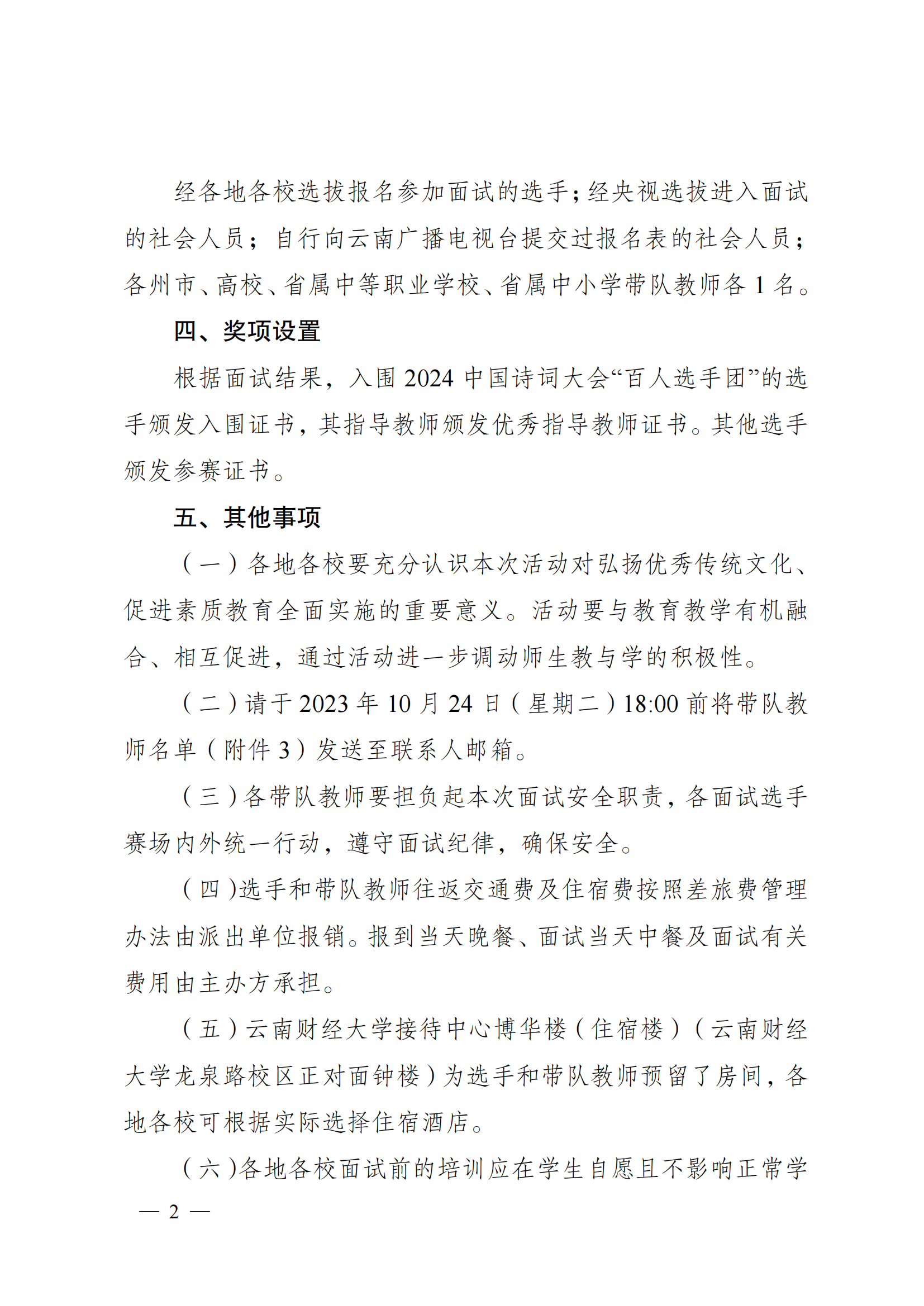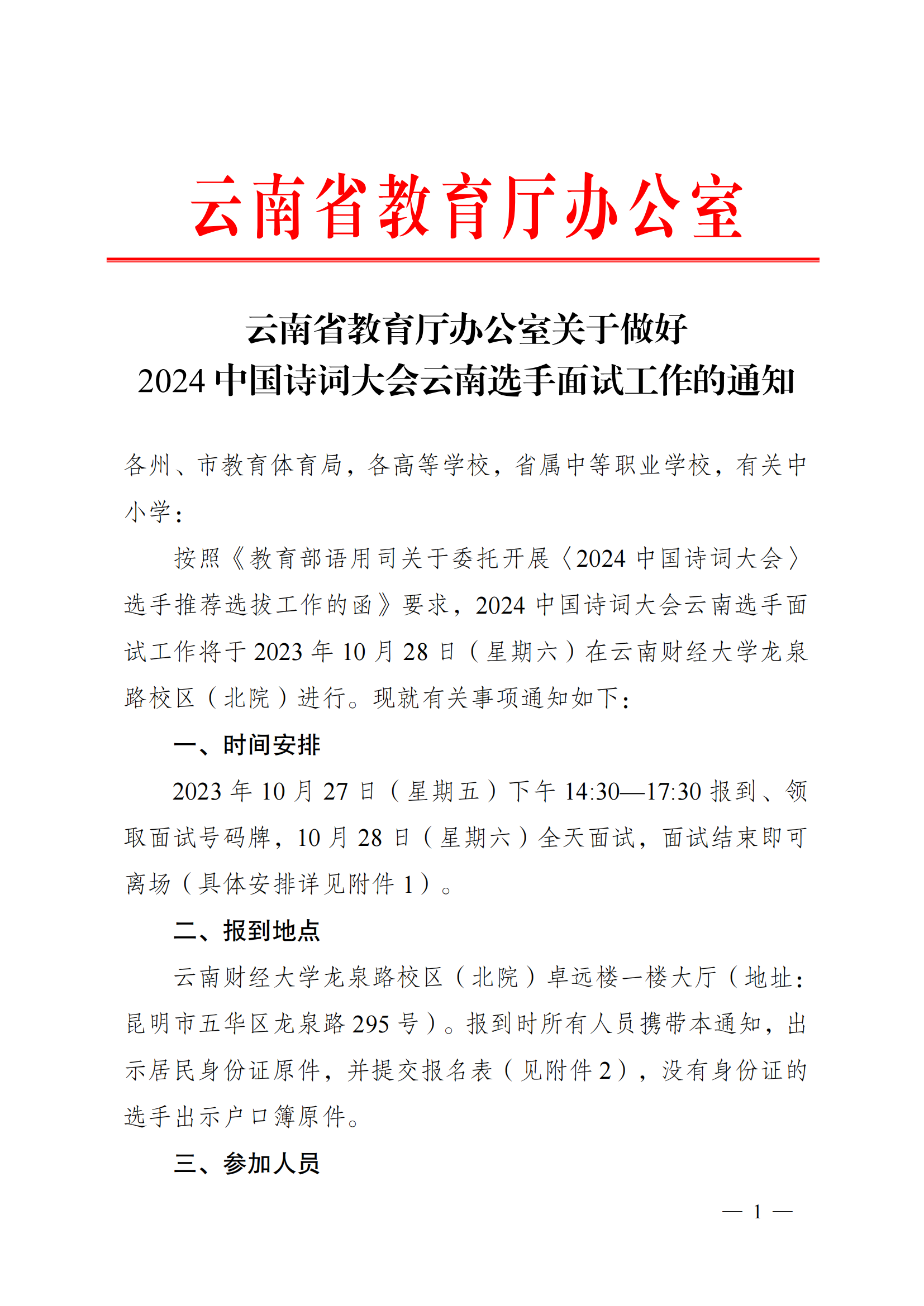 云南省教育厅办公室关于做好2024中国诗词大会云南选手面试工作的通知