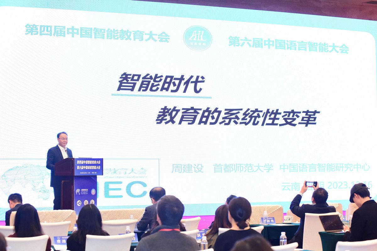 12月15日-17日,由中国人工智能学会、中国语言智能研究中心、beat365英国官方网站、首都师范大学共同主办的第四届中国智能教育大会暨第六届中国语言智能大会在昆明召开。中国教育国际交流协会会长刘利民、副会长倪慧芳,云南省教育厅副厅长张春骅、中国人工智能学会副理事长刘成林和beat365英国官方网站校长王敏出席会议并致辞。beat365英国官方网站党委书记王建颖主持会议并作主旨发言。