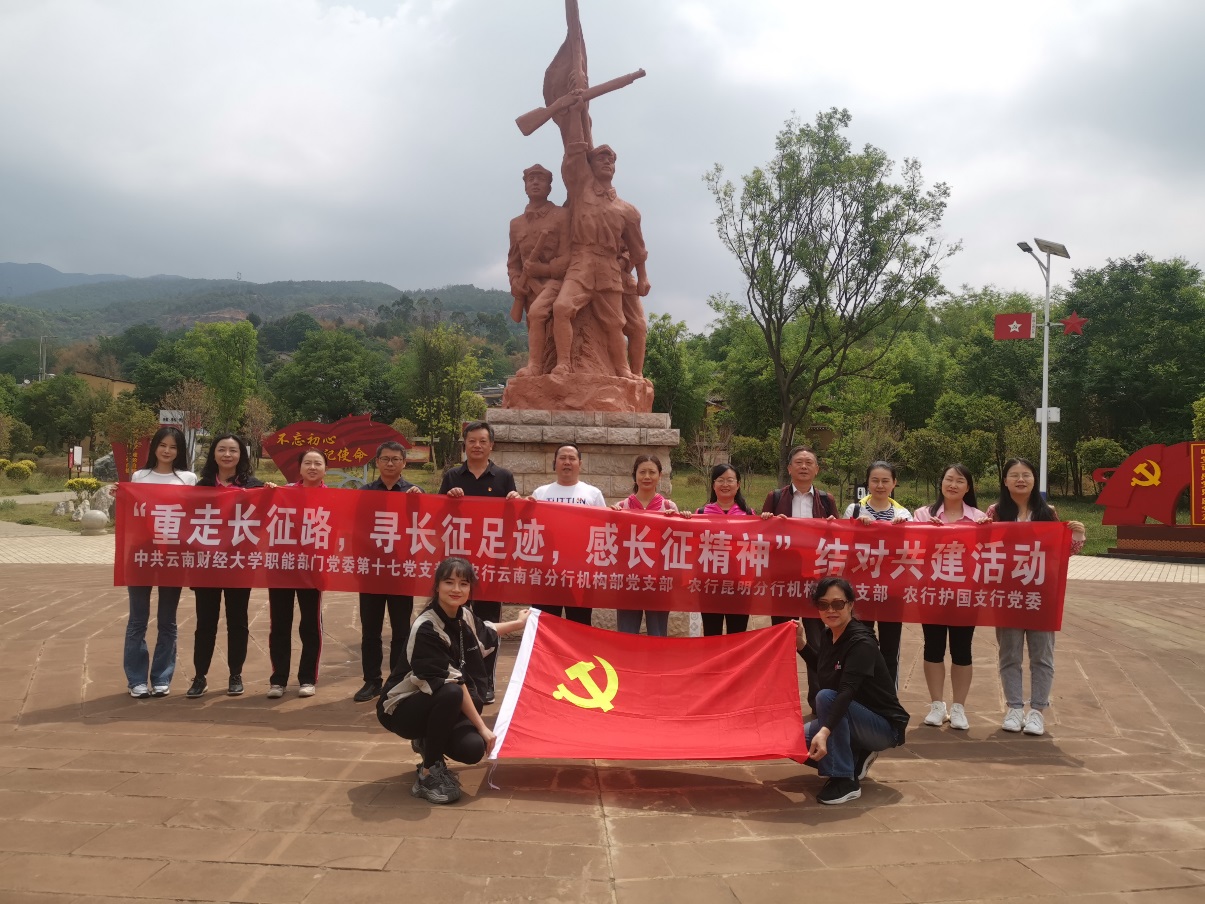 为深入开展学习贯彻习近平新时代中国特色社会主义思想主题教育,引导广大党员发扬长征精神,结合支部“三课堂、三活动”计划,2023年5月12日,职能部门第十七党支部与农行云南省分行机构部党支部、昆明分行机构部党支部、护国支行党委开展支部共建活动,共同前往寻甸县柯渡镇丹桂村红军长征纪念馆开展“重走长征路,寻长征足迹,感长征精神”支部共建活动。