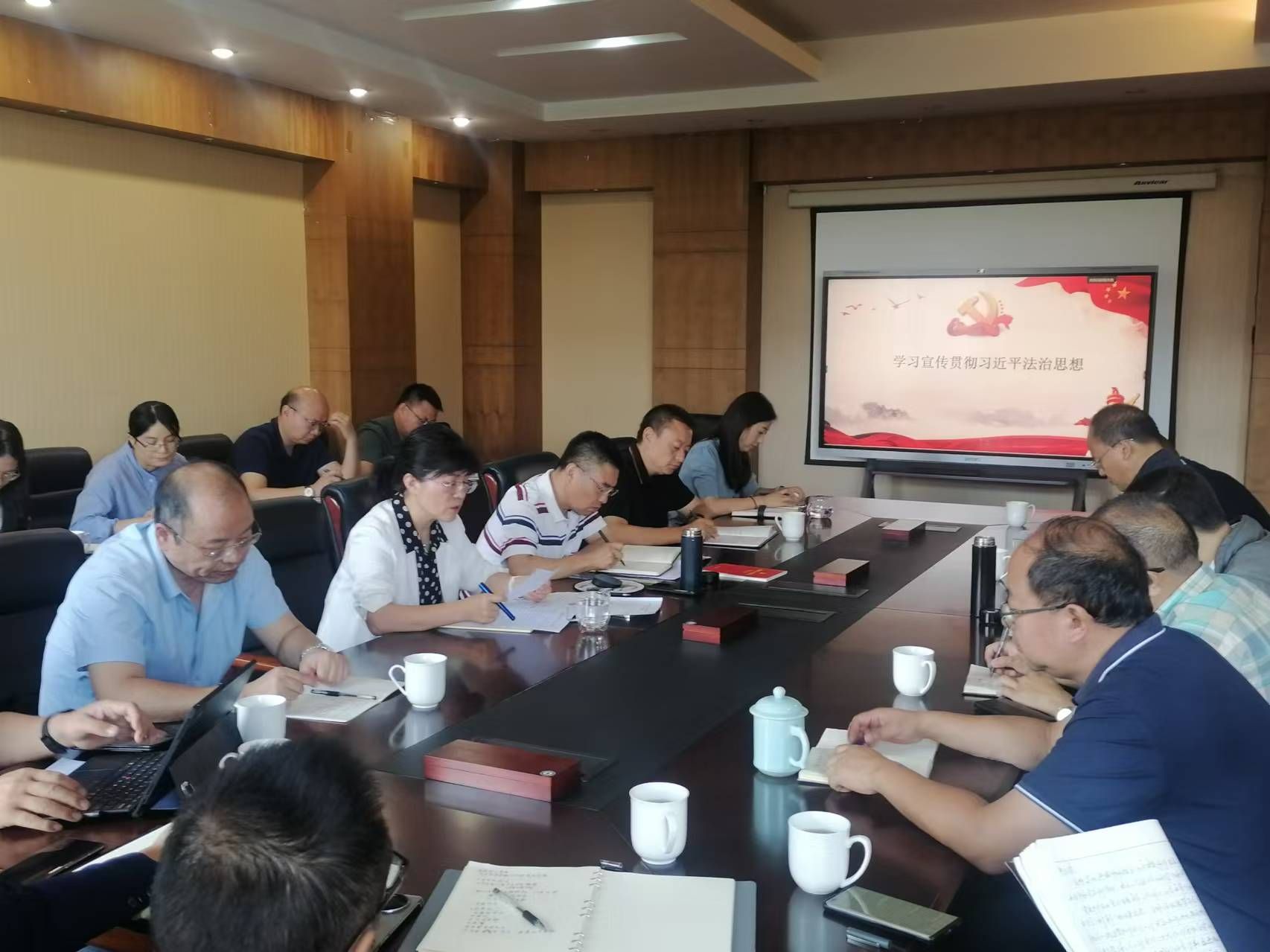 2024年9月19日上午,职能部门党委理论学习中心组专题学习习近平法治思想,职能部门党委书记朱恒祥主持,党委委员及所属支部书记、委员参加学习。