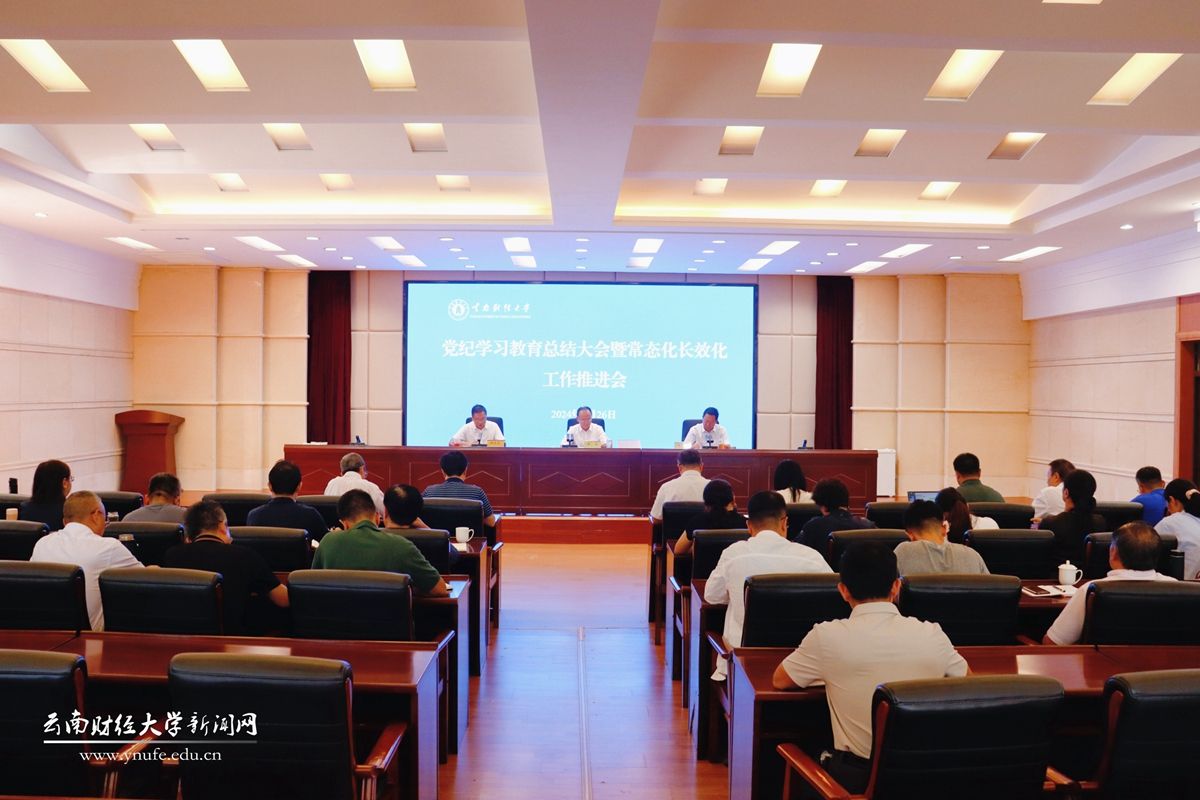 陈红强调,党纪学习教育取得了积极成效,要巩固深化党纪学习教育成果,坚持融入日常、抓在经常,常态长效推进学纪知纪明纪守纪,并就下一步抓好学校党纪学习教育常态化长效化工作提出了四点要求。一是要把学习习近平总书记关于全面加强党的纪律建设的重要论述,作为当前和今后一段时期的重要政治任务,深刻理解蕴含其中的道理学理哲理,深刻领悟贯穿其中的立场、观点、方法,切实学懂弄通做实。二是要建立健全党纪学习教育常态长效机制,认真抓好《关于推进党纪学习教育常态化长效化的意见》的贯彻落实,坚持用党的纪律建设来校准思想之标、调整行为之舵、绷紧作风之弦,把学党纪、守党纪作为“常修课”“终身课”。三是要以高质量纪律建设推动党的建设取得新成效,坚持把严守政治纪律和政治规矩放在首位,把组织纪律建设摆在更加突出的位置,持续深化作风革命效能革命,时刻拧紧纪律的“发条”,奋力营造风清气正的校园生态环境。四是要坚持严管厚爱相结合,持续推动干部干事创业,坚持重一线、重实干、重实绩、重公认的用人导向,引导广大党员干部积极践行省委提出的“主动想”“扎实干”“看效果”抓工作“三部曲”,以干部遵规守纪和履职尽责的有机统一,充分调动广大党员、干部开拓进取、干事创业的积极性、主动性,以优异成绩迎接新中国成立75周年。