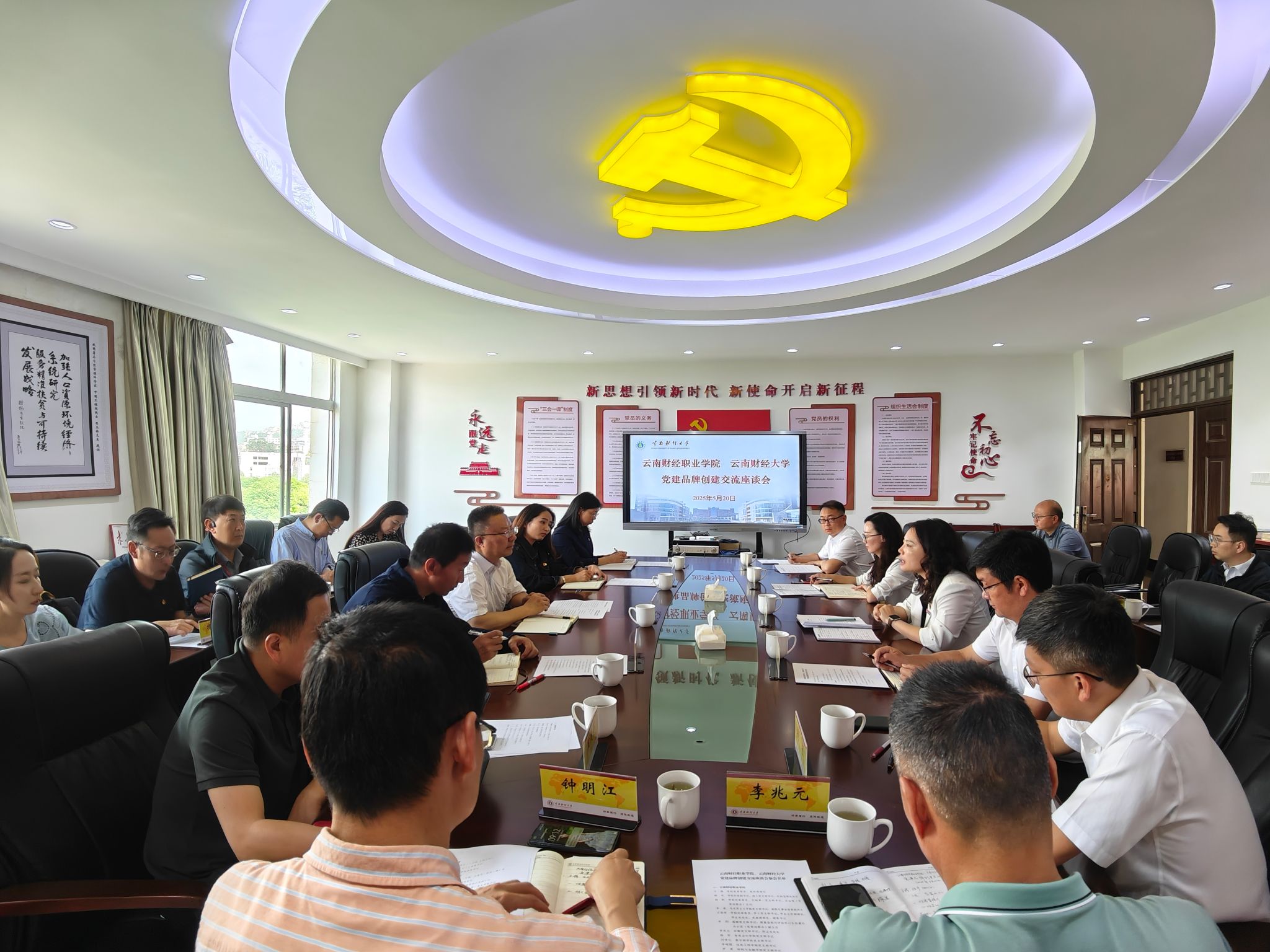 为深入学习贯彻习近平总书记关于党的建设的重要思想,全面落实新时代党的建设总要求和新时代党的组织路线,扎实开展校际合作与党建“手拉手”活动,共同探讨新时代高校“一融双高”发展实践路径。5月20日,云南财经职业学院党委委员、组织部部长习强带队到学校开展党建品牌创建座谈交流。学校组织部副部长李姗姗出席会议并讲话,组织部副部长段宁主持会议。