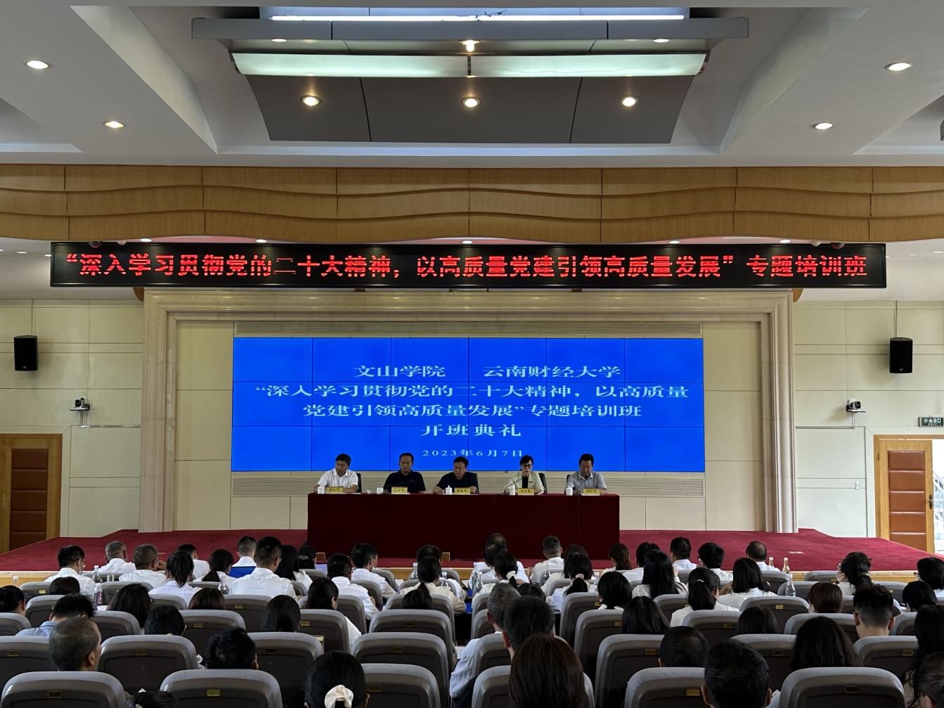 此次培训历时3天,围绕深刻领会党的二十大精神的丰富内涵、学习贯彻《中国共产党普通高等学校组织工作条例》、新时代高校院系高质量党建引领高质量发展的探索与启示、推进高校事业高质量发展、基础党务工作实务、发展党员工作操作实务等内容共开展6次专题讲座,文山学院、beat365英国官方网站二级党组织书记、副书记、党支部书记、组织员以及beat365英国官方网站师生党员代表共计1000余人参加了此次培训。
